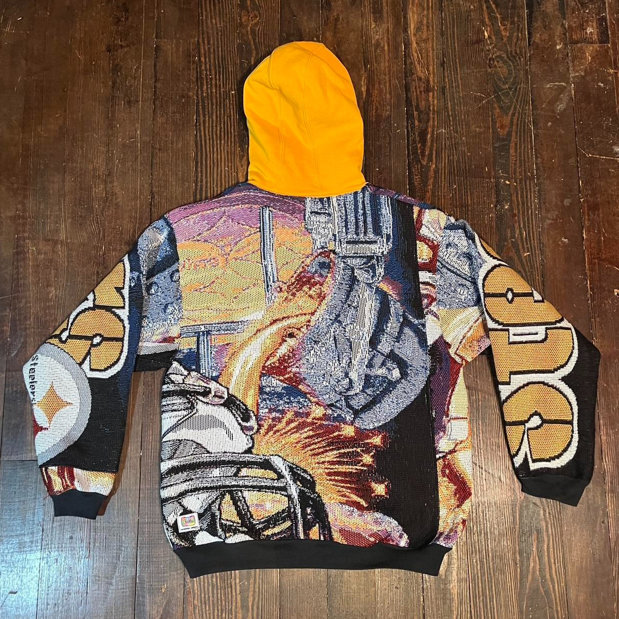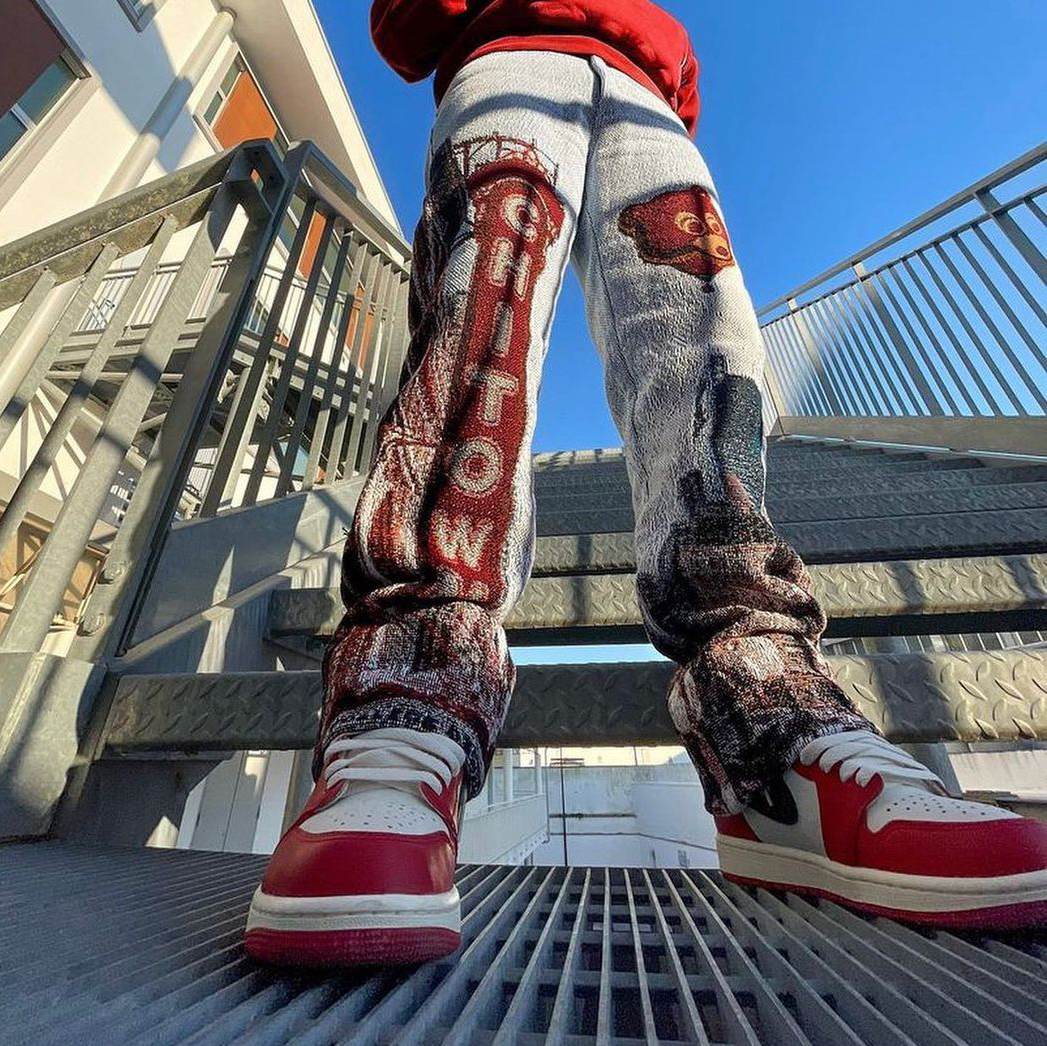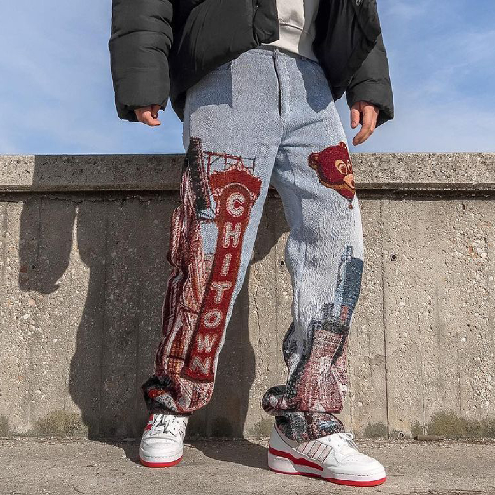 Street 49ers Print Leather Patchwork Baseball Jacket