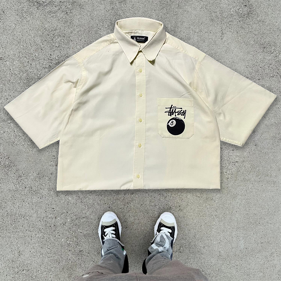Casual Letters Billiards Print Button Short Sleeve Shirt
