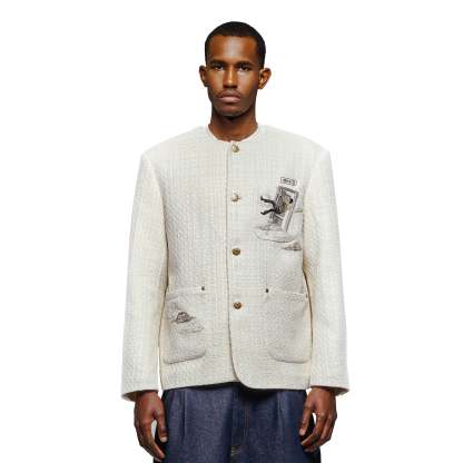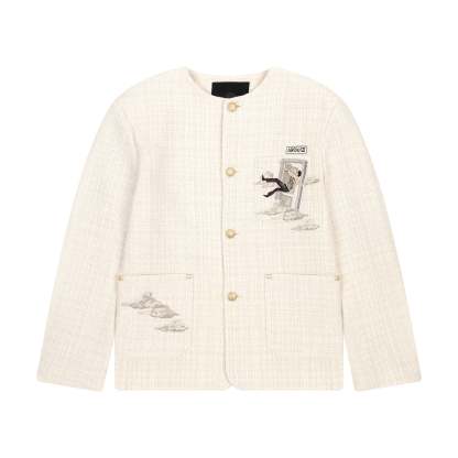 335gsm tweed fabric / 50% polyester 35% acrylic 15% cotton / embroideries on front / regular fit / custom buttons / fits true to size