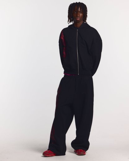 Straight and loose sports pants.100% cotton. 400 g/m² French terry.Black color.Screen printed contrasting logo and graphics on front.Waistband with adjustable drawstring.Pockets on the sides.Cold Culture label included.
