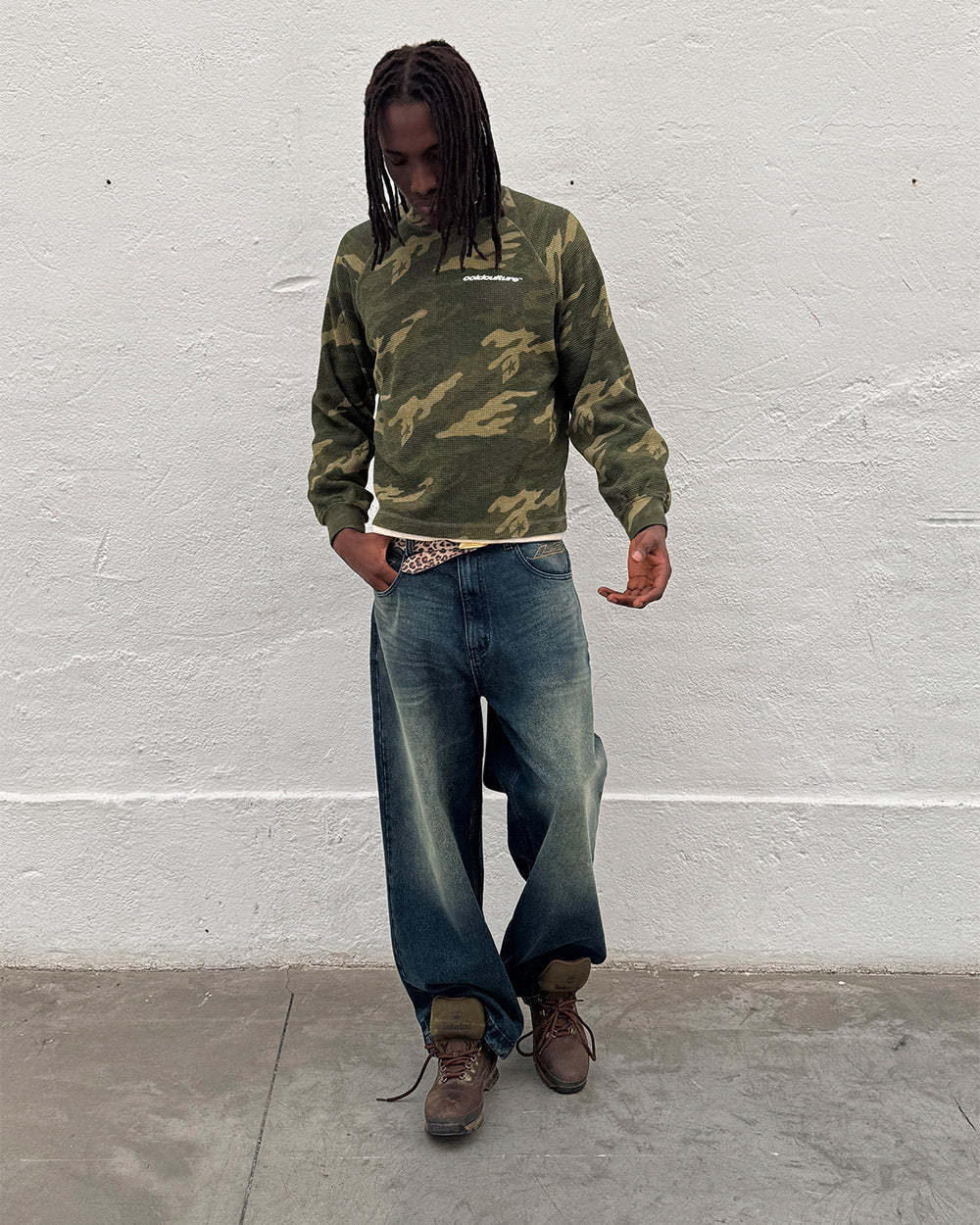 Straight loose pants.