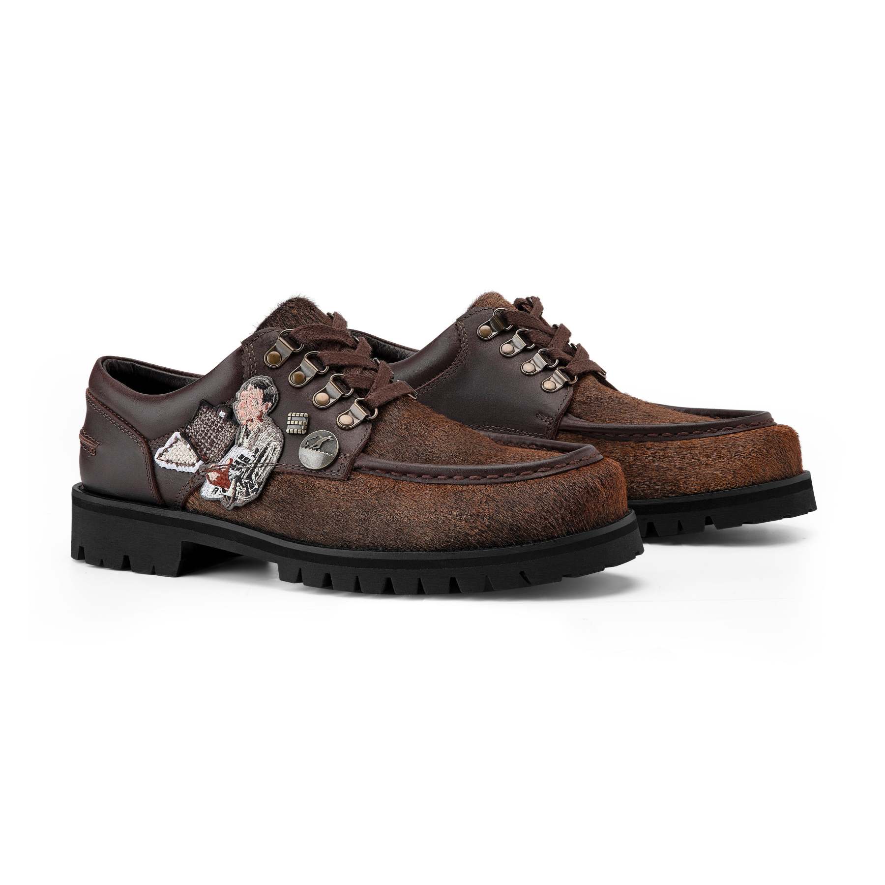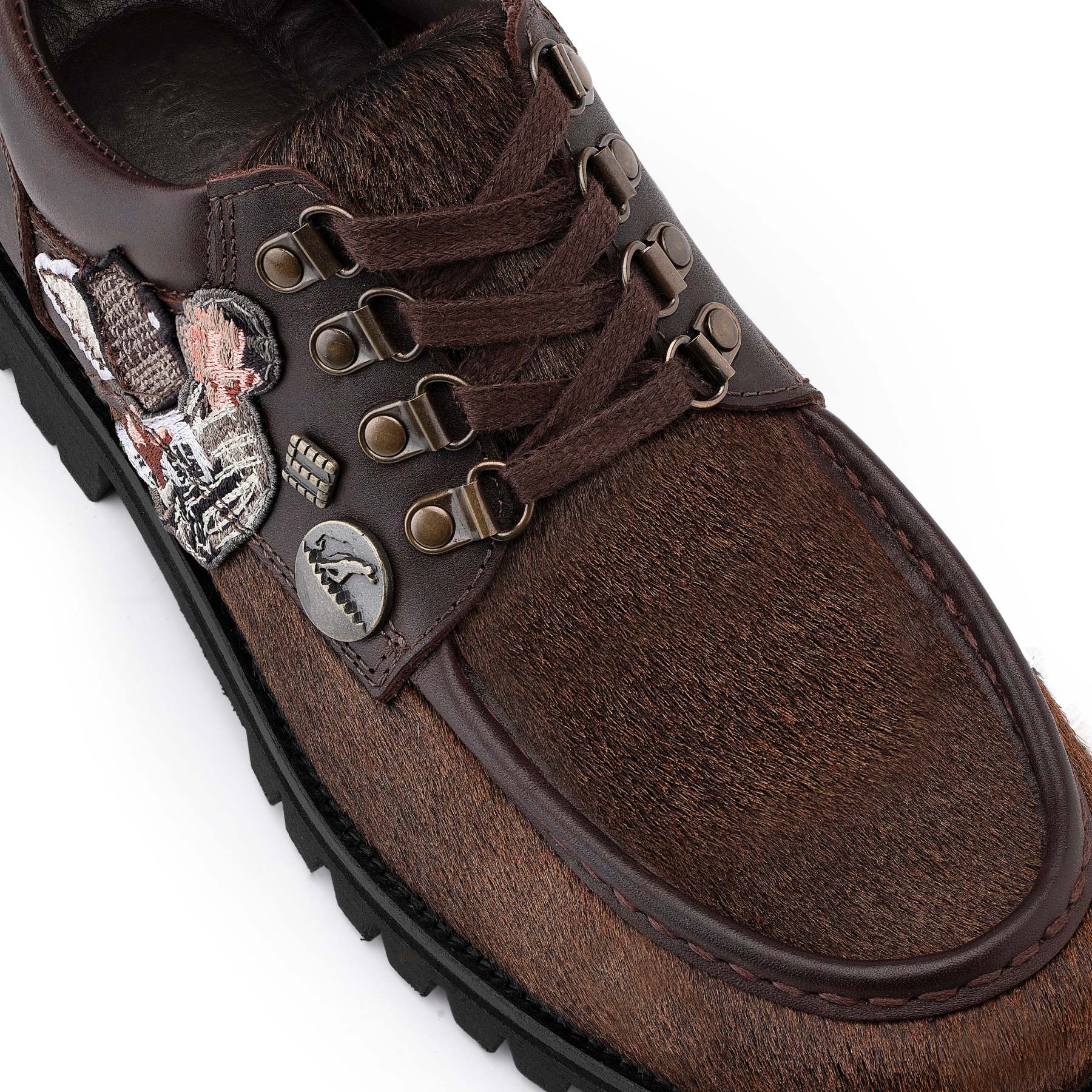 genuine leather / cow hide leather on front pieces / leather inner-lining / embossed insole / embroidered patches and custom metal pins on side panel / vibram sole / fits true to size / manufactured in Türkiye