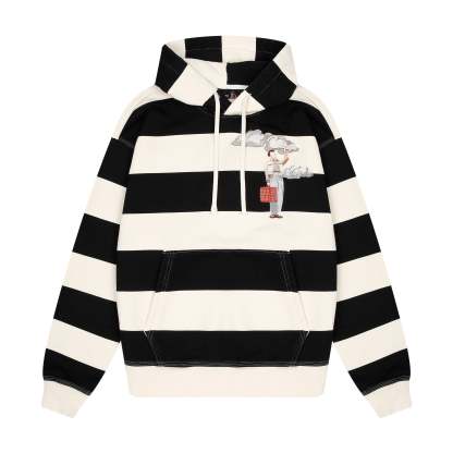 "on air" ecru-navy striped Hoodie