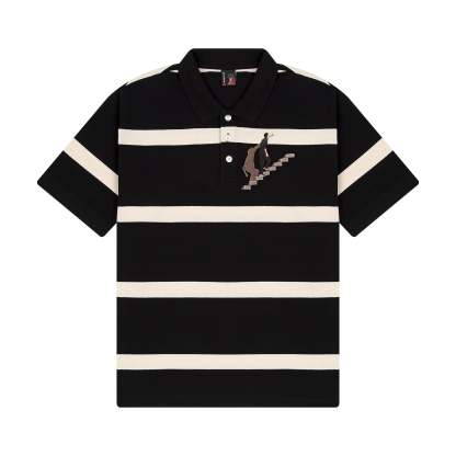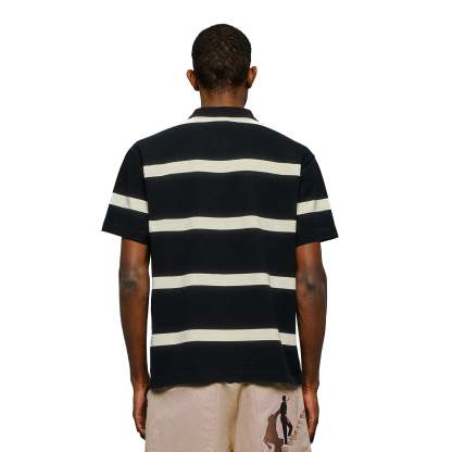 305gsm striped cotton yarn / 100% cotton / embroidery on front / custom buttons / fits true to size