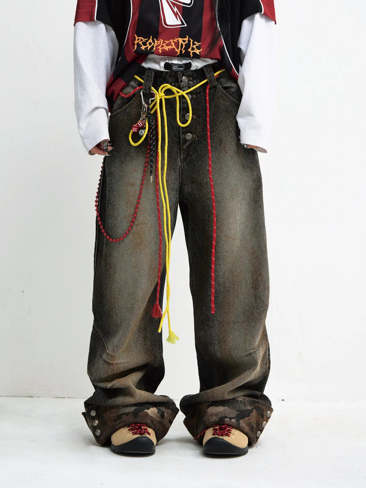 Peoplesense Mud-Dyed Straight-Leg Jeans with Camouflage Hem