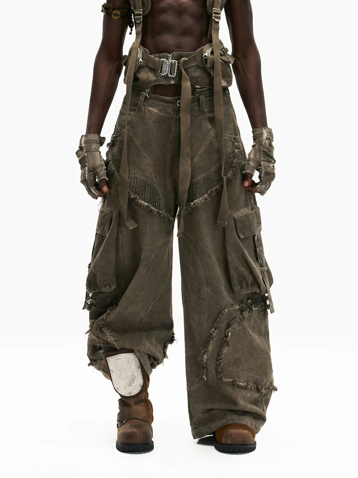 Personsoul Armor Faux Skirt Mud Dye Cargo Pants(limited)