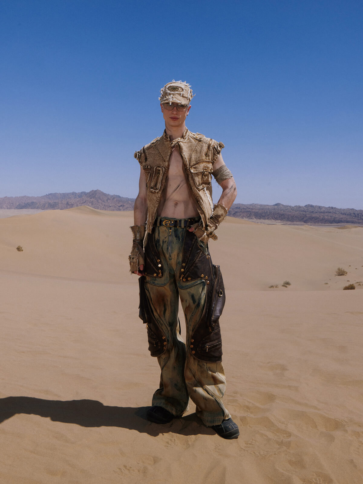 Personsoul Dirty Distressed Apricot Gaucho Pants
