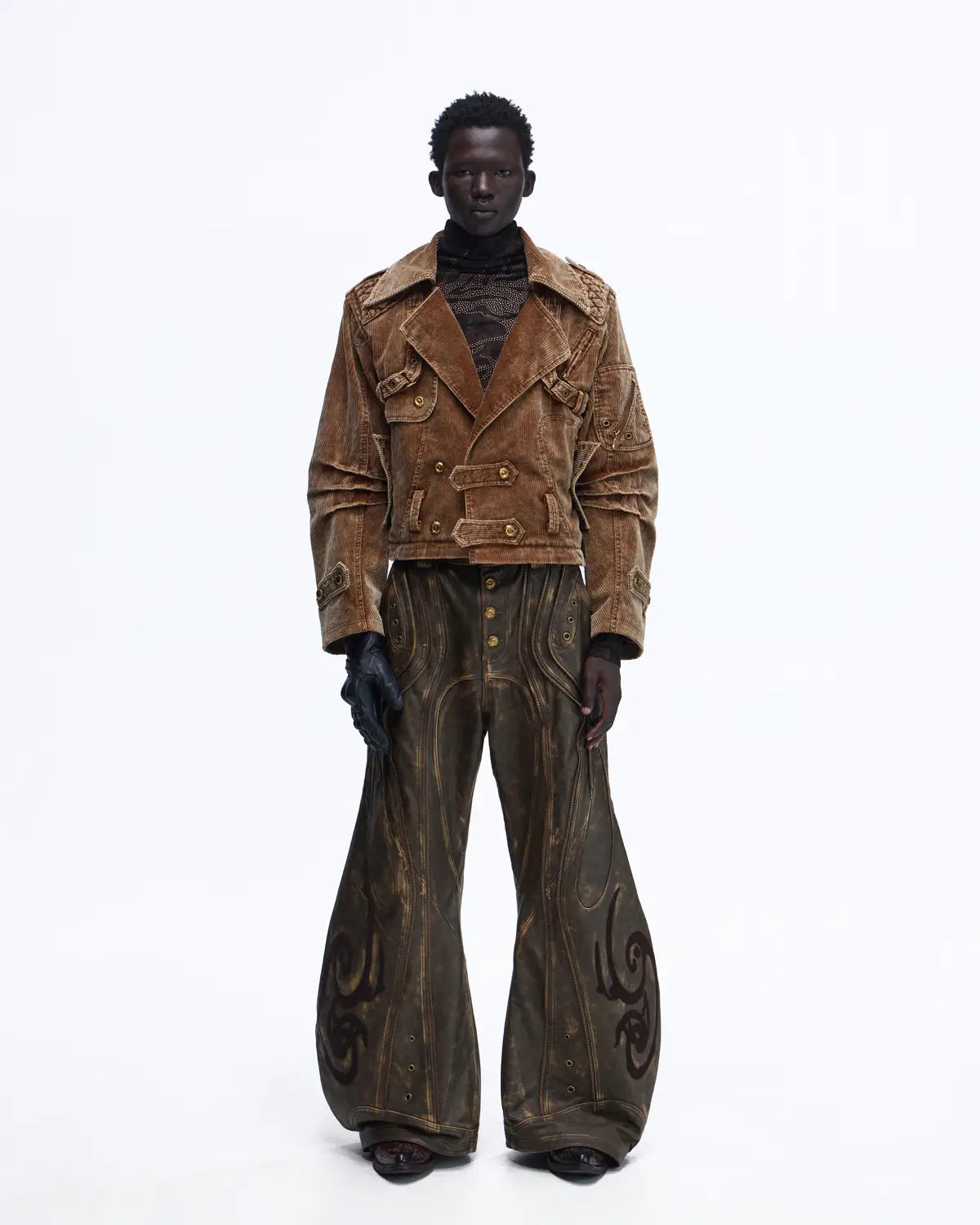 Personsoul Laser-Etched Crocodile-Patterned Raw Denim Curved Jeans