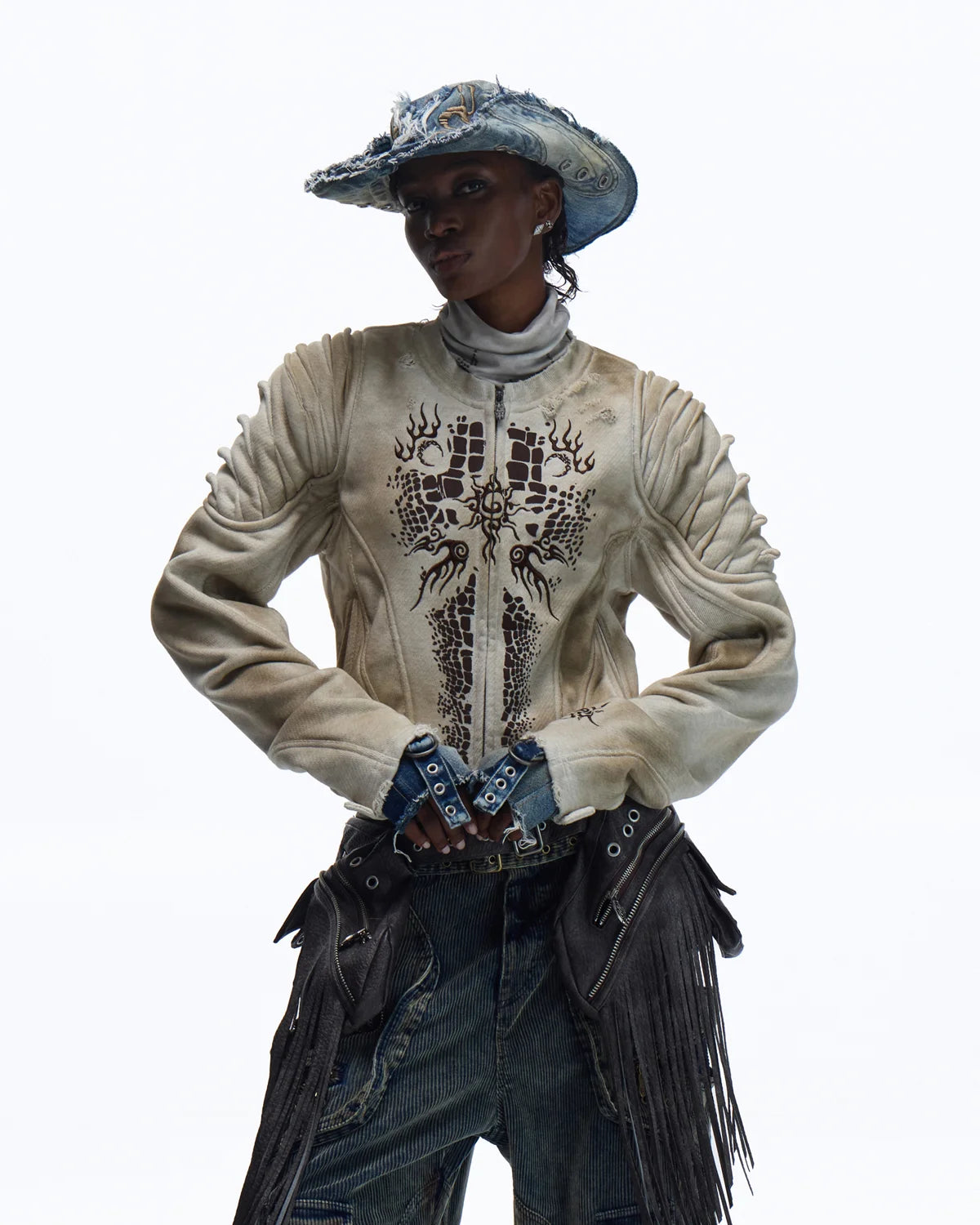 Personsoul Crocodile-print Slim-fit Cropped Jacket