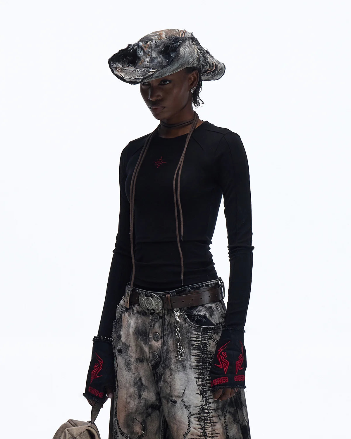 Personsoul Baggy Denim Jeans with Red Contrast Stitch