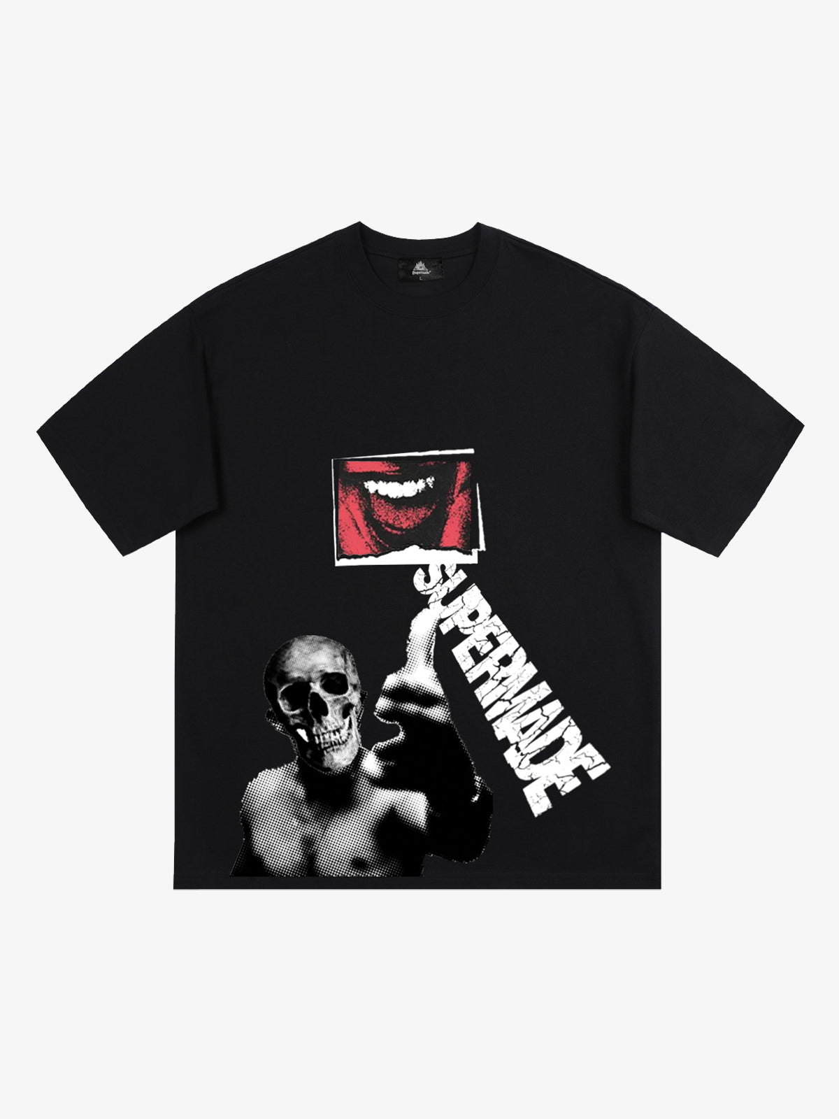 Trendy Multicolor Graffiti Skull Graphic T-Shirt