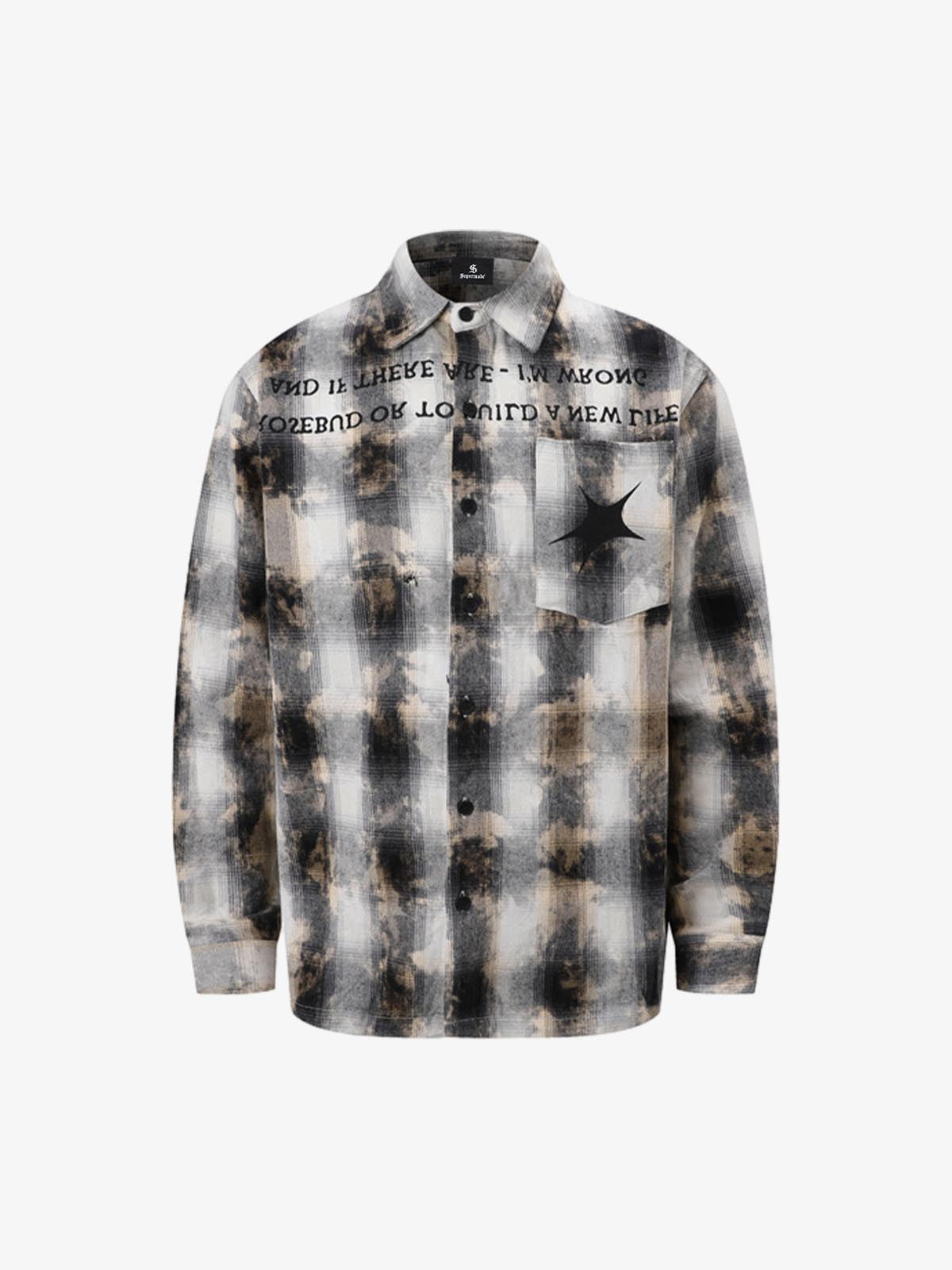 Streetwear Washed Distressed Plaid Long Sleeve Shirt