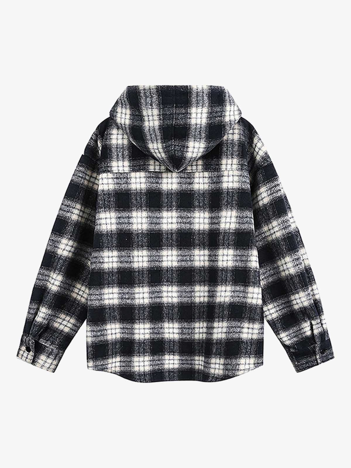 Vintage Black And White Plaid Angel Embroidered Hooded Shirt