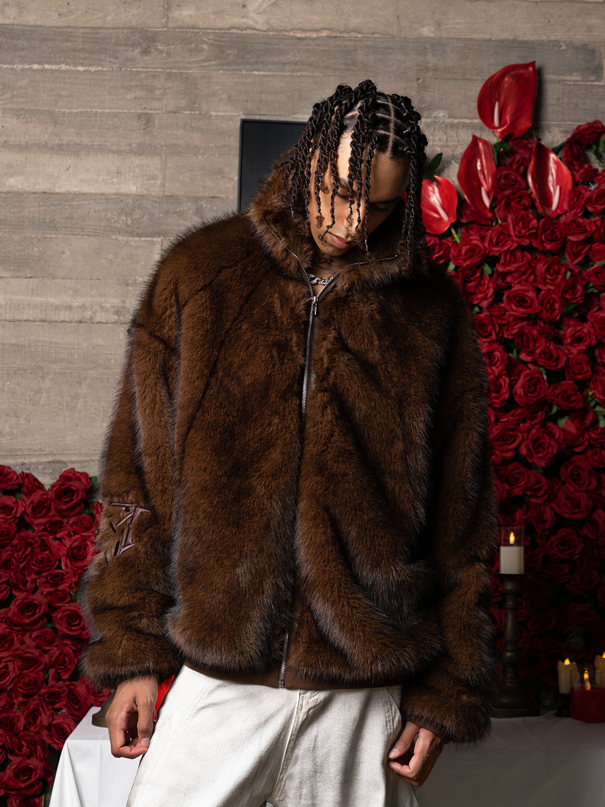 Thesupermade Hip-hop Letter Stand Collar Fur Jacket - 1908