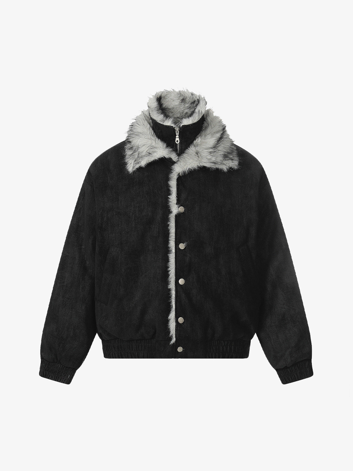 Retro Detachable Faux Fur Collar Shearling Button-Up Jacket