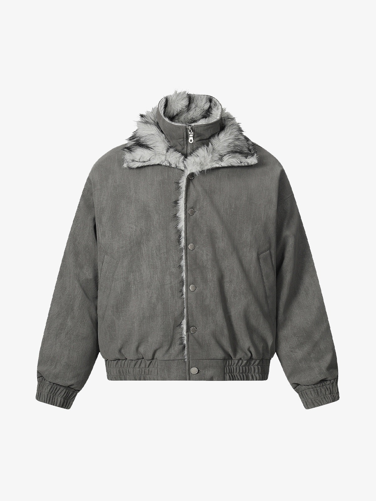 Street Punk Oblique Zipper Lambswool Collar Quilted Jacket