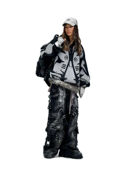 A-Line Baggy Jeans with Hardware Details