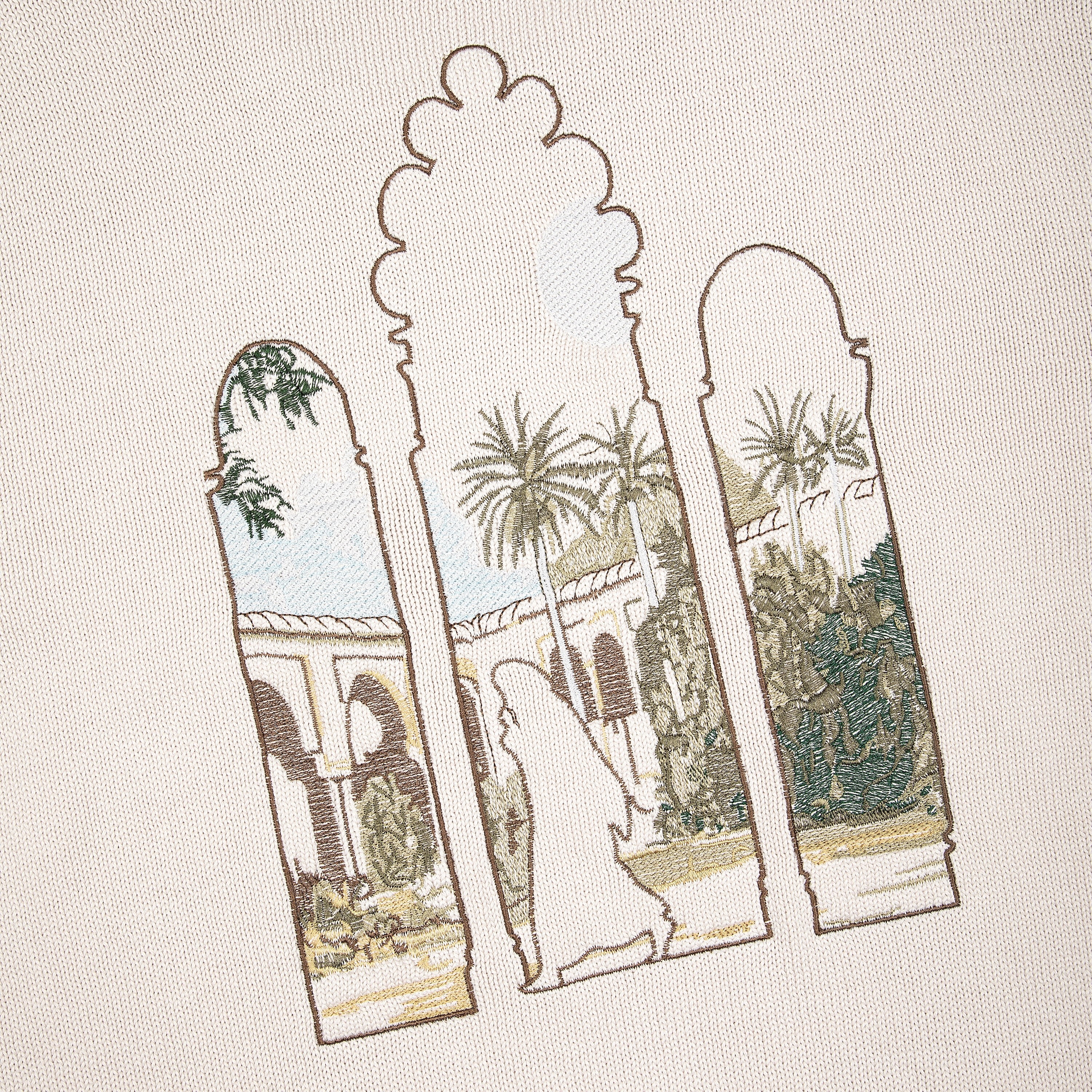 100% cotton / heavyweight knit / jacquard pattern on front / embroidery on back / fits true to size
