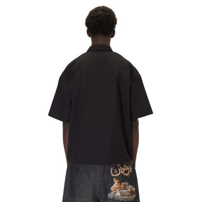 poplin fabric / 100% cotton / embroidery on front / custom buttons / curved hem / relaxed fit / fits true to size
