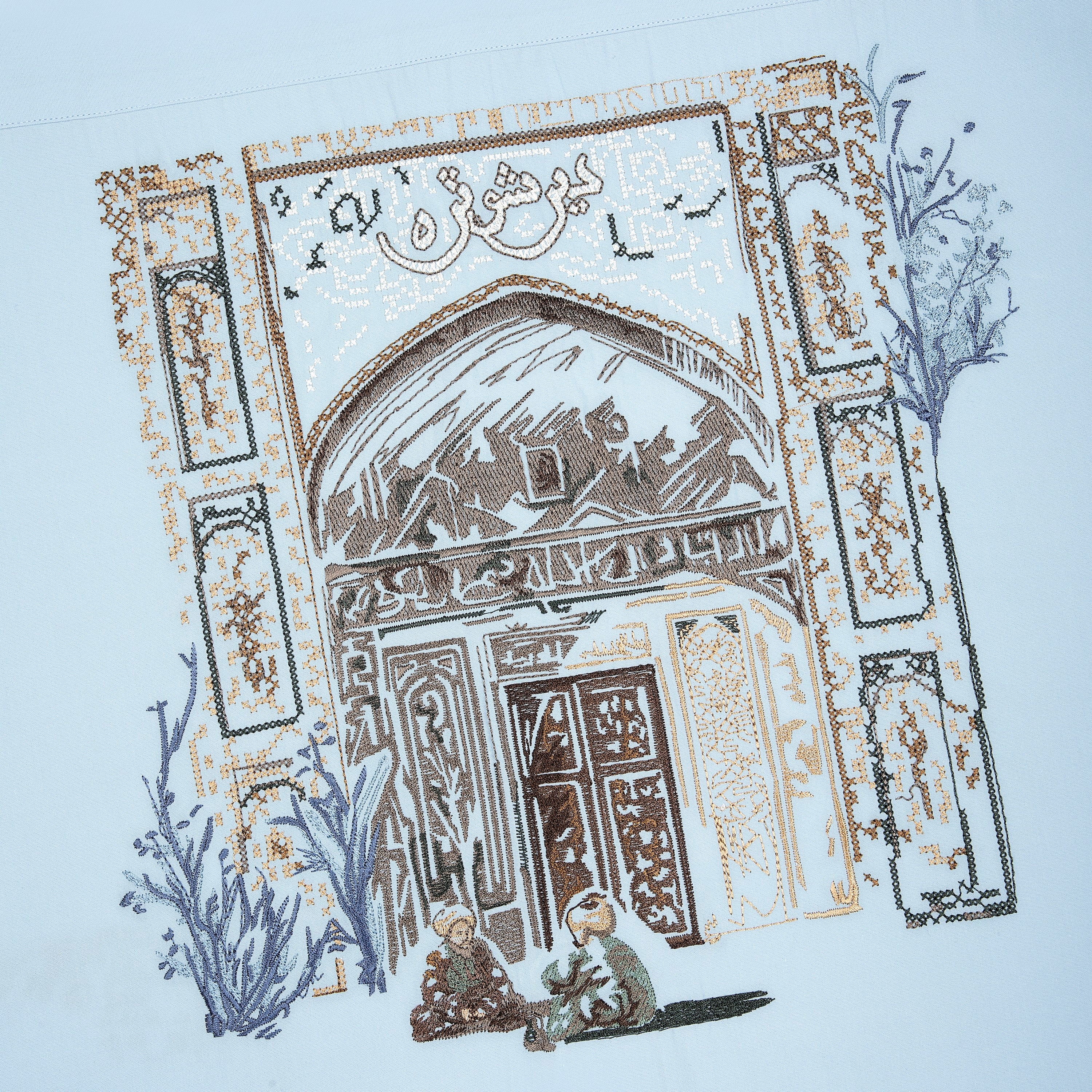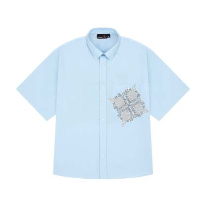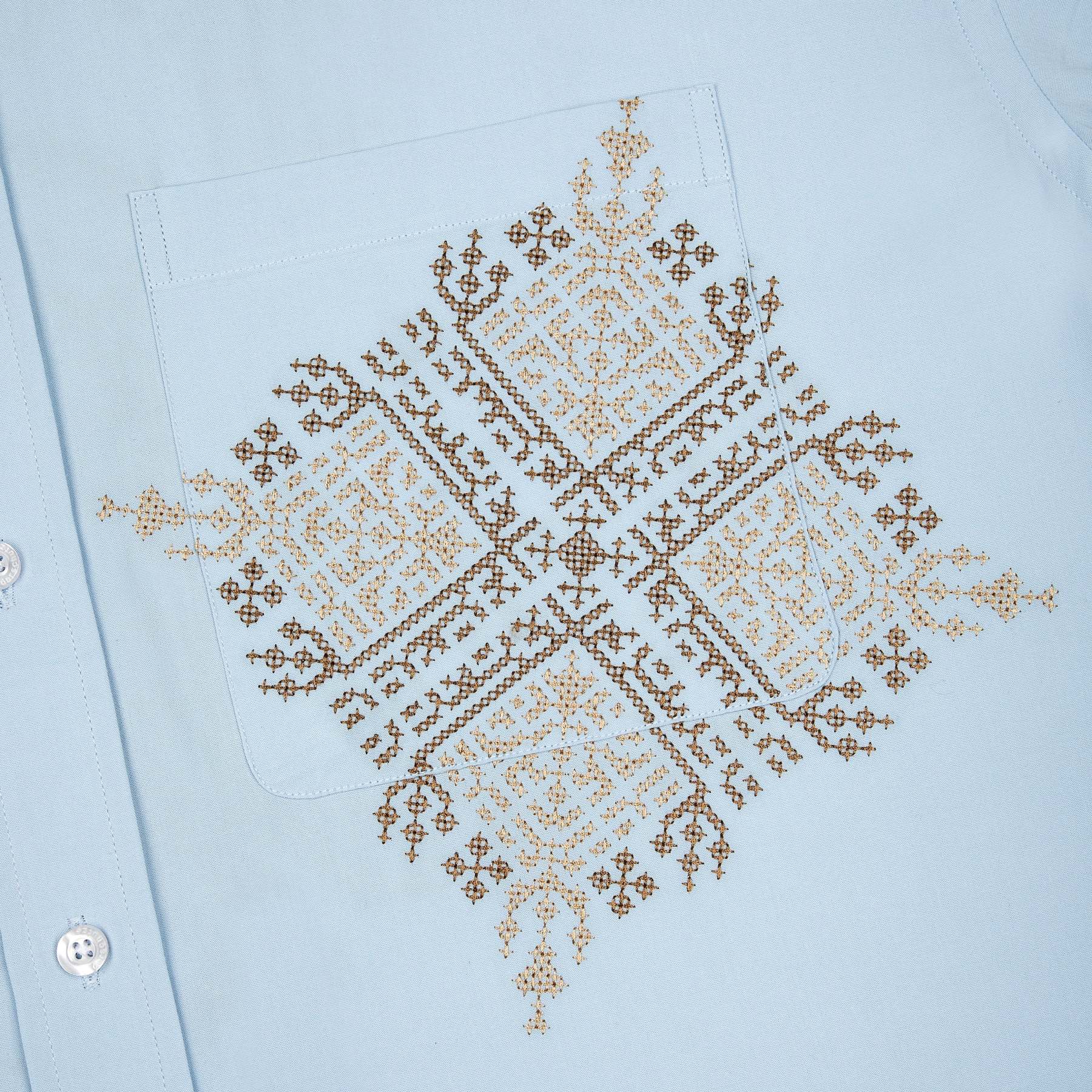poplin fabric / 100% cotton / embroidery on front and back / custom buttons / curved hem / relaxed fit / fits true to size