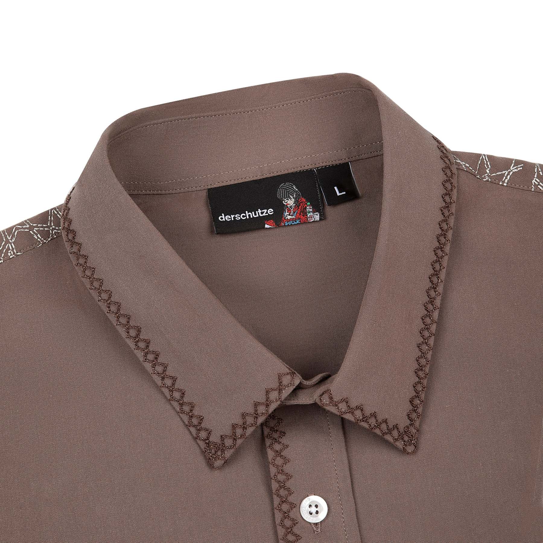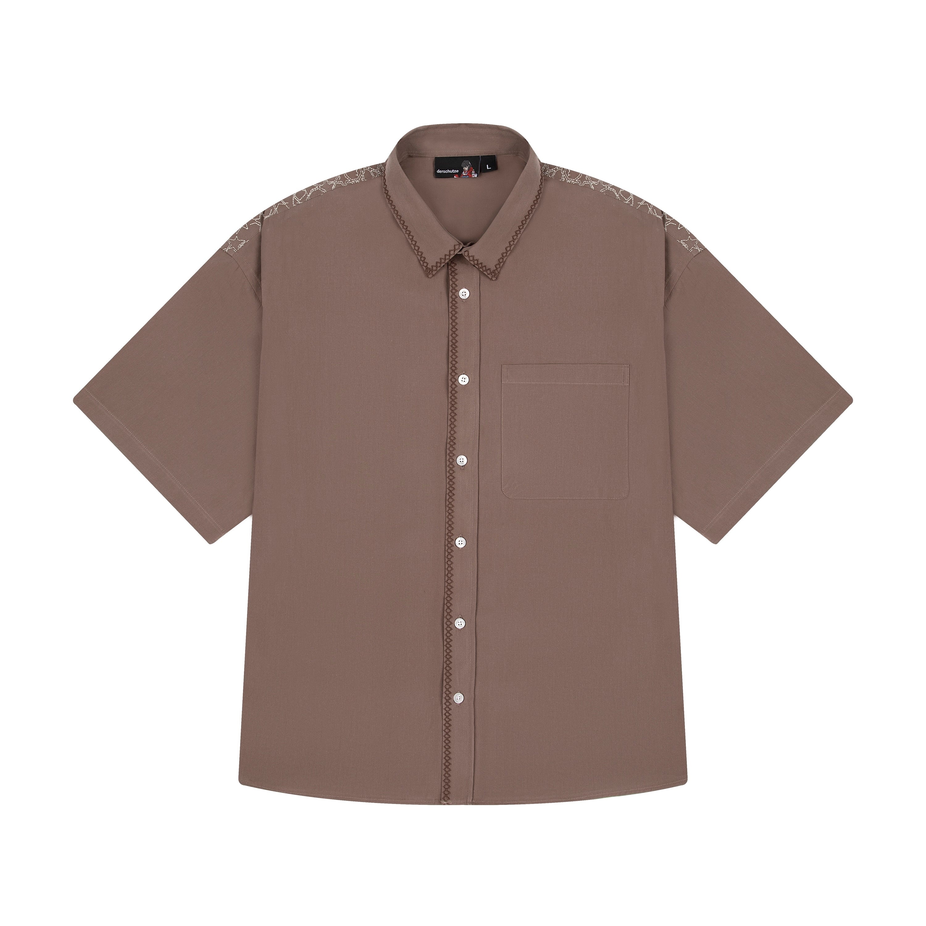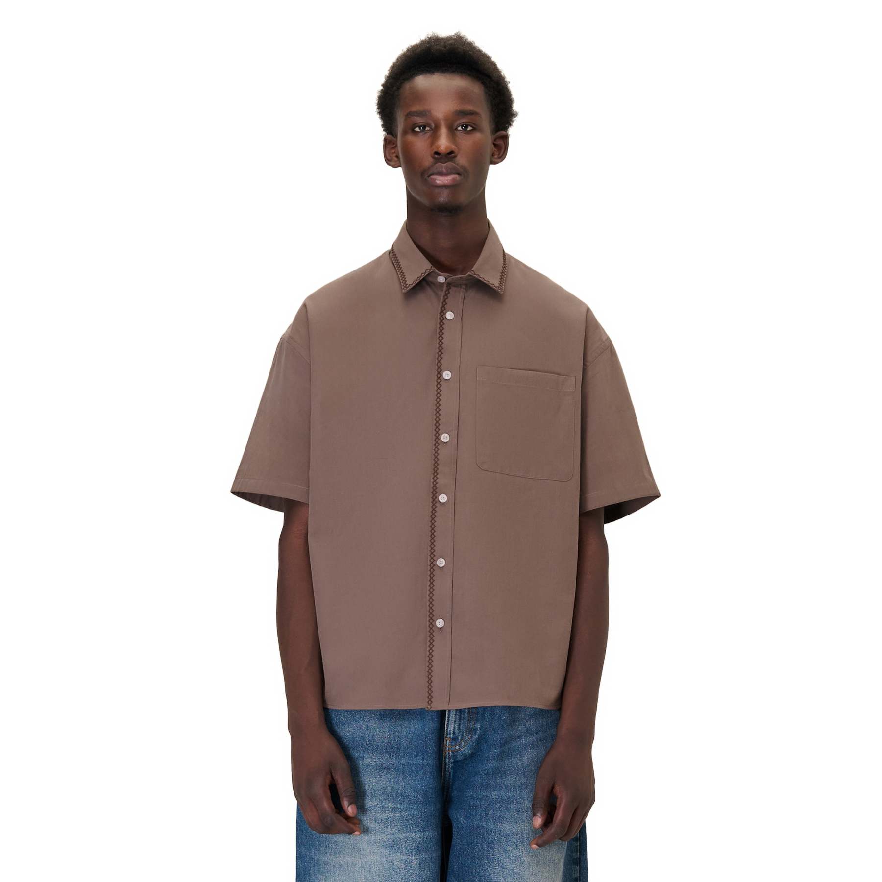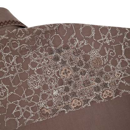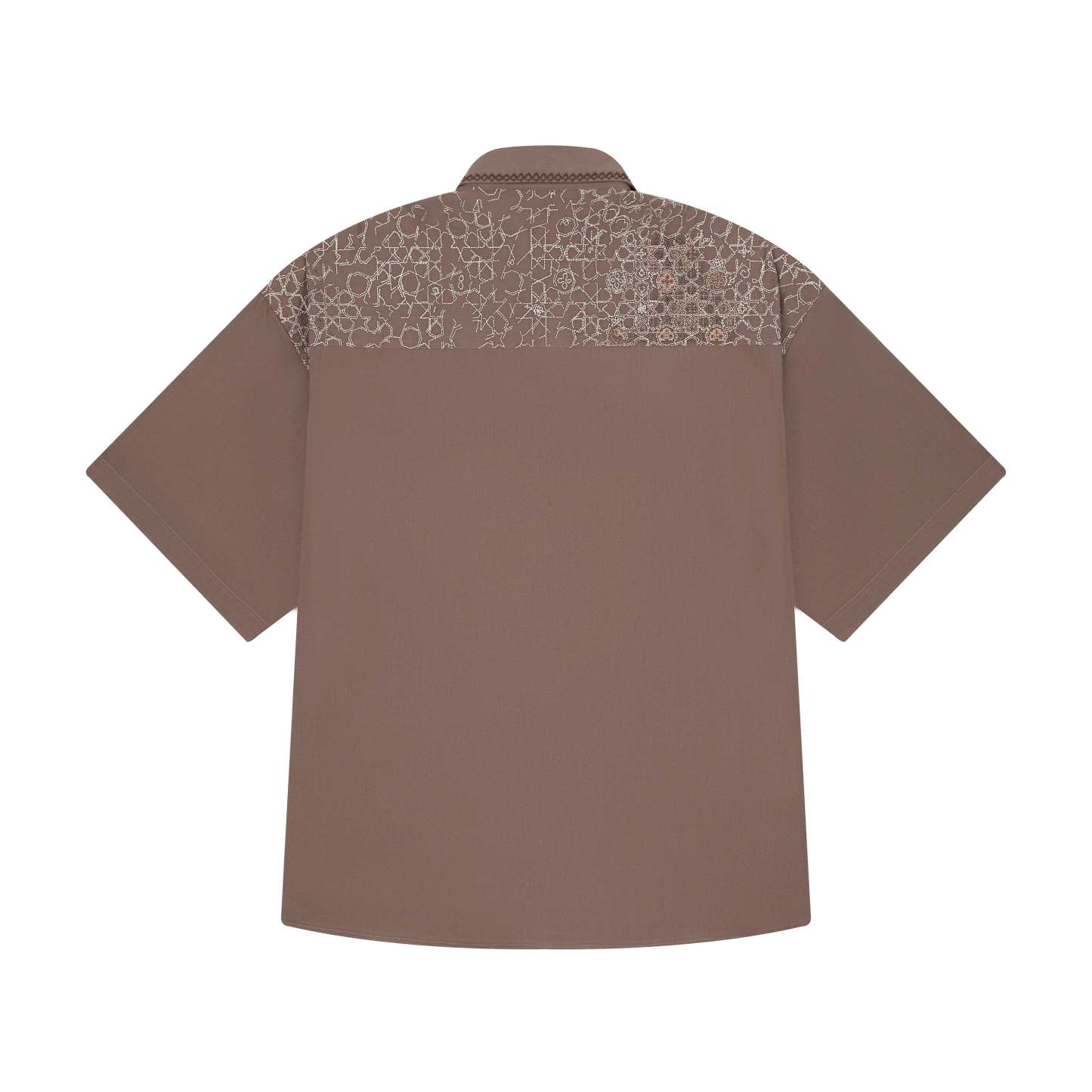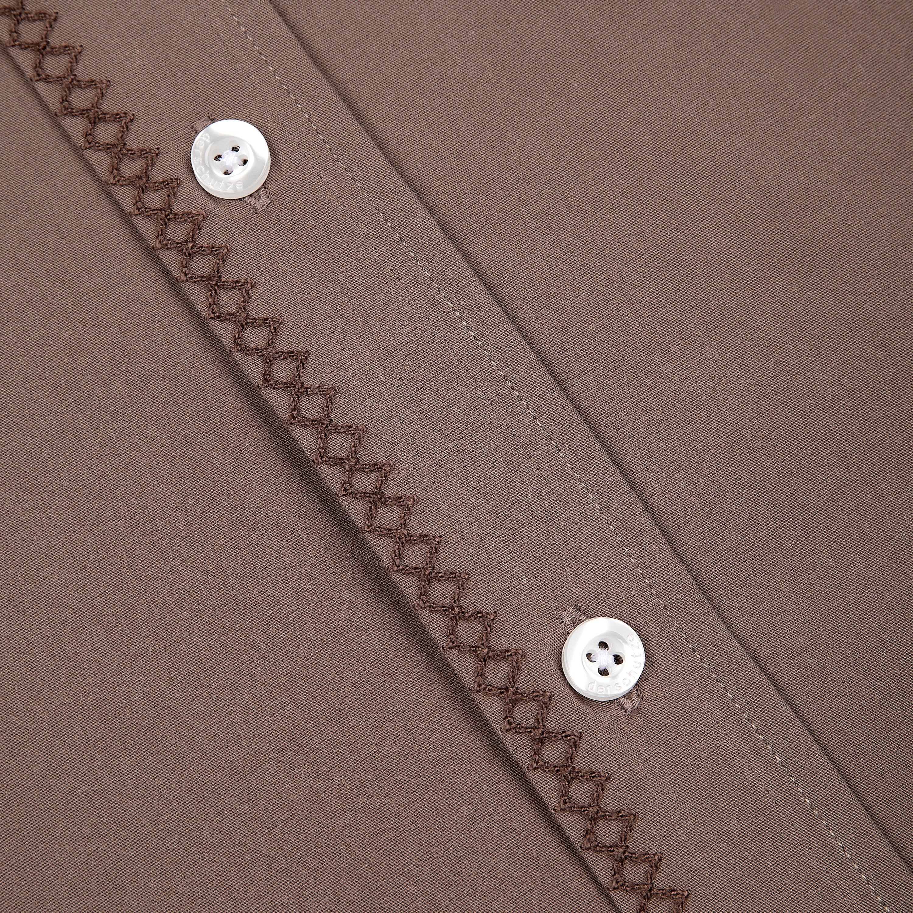 poplin fabric / 100% cotton / crochet sewing around collar and fly opening / embroidery on back robe / custom buttons / curved hem / relaxed fit / fits true to size