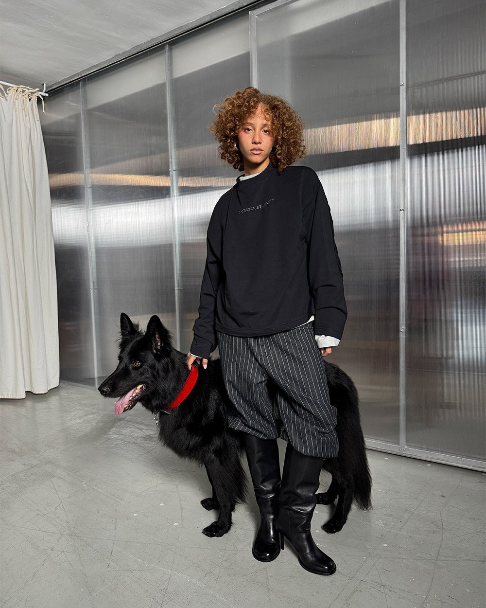 DISTRESS CURVED LONGSLEEVE BLACK