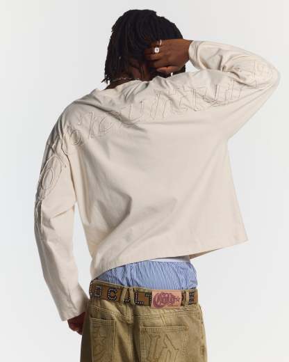 DISTRESS CURVED LONGSLEEVE LIGHT GREY