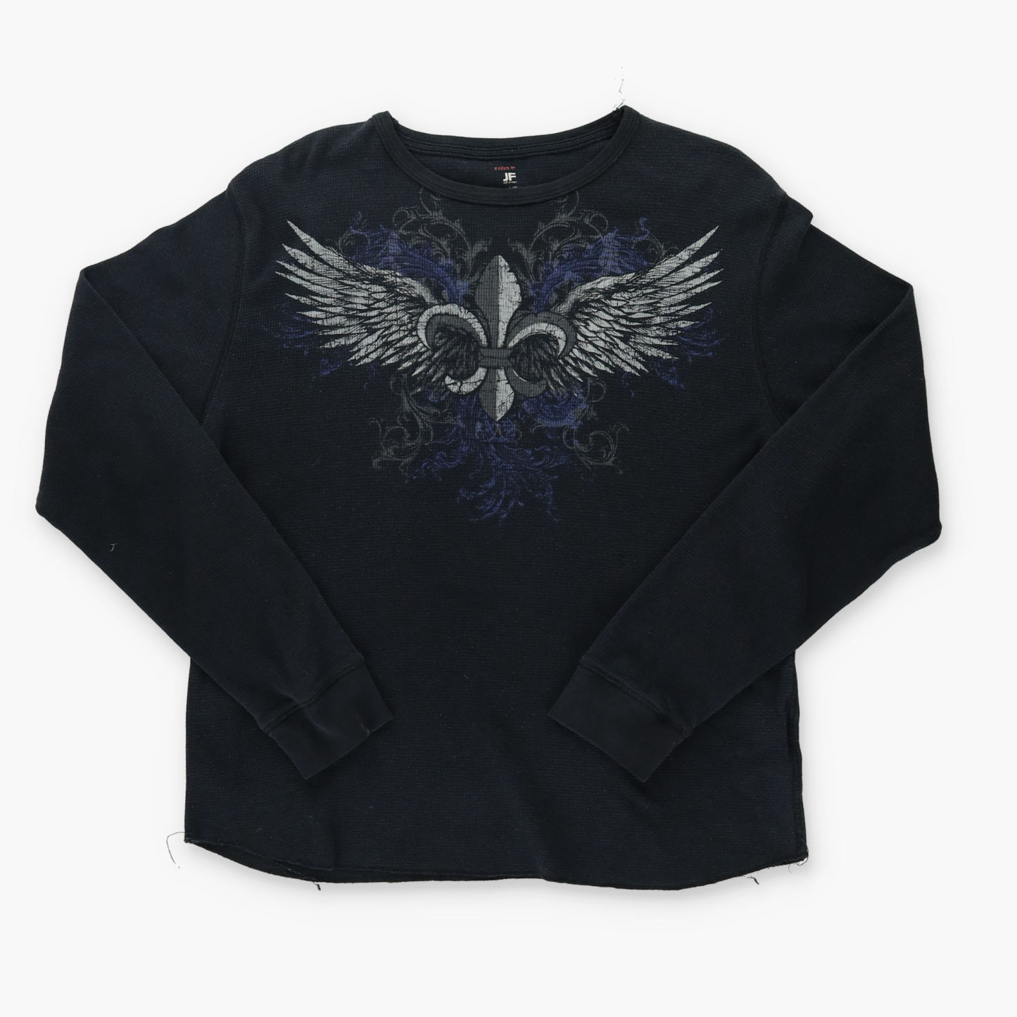 J Ferrar Y2K Cross Wing Grunge Long Sleeve Waffle Tee (L)