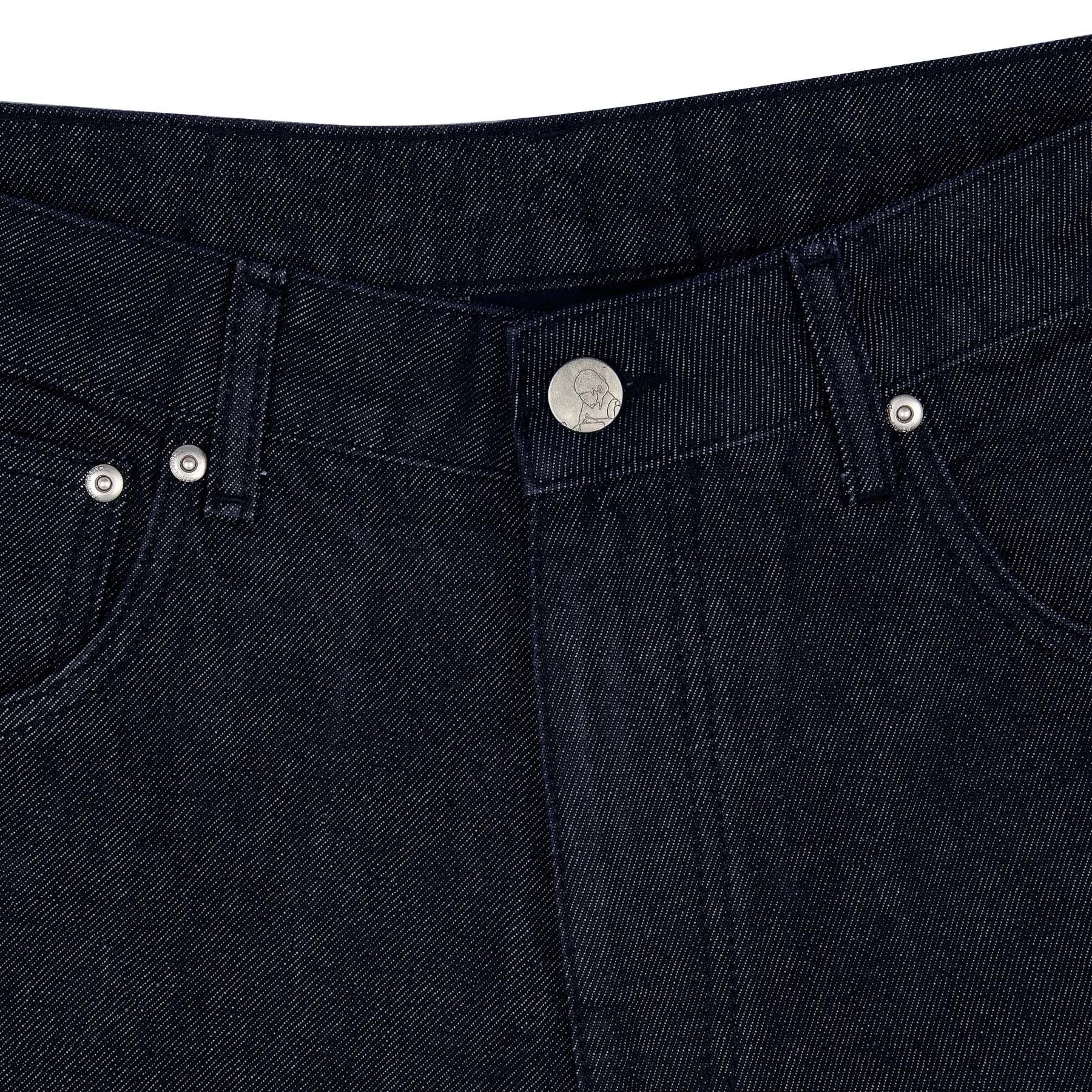 14,5oz raw denim / 100% cotton / embroidery on front and back pocket / embroidered leather patch / wash inside out / fits true to size