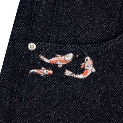 "koi fish v2" Jorts raw indigo