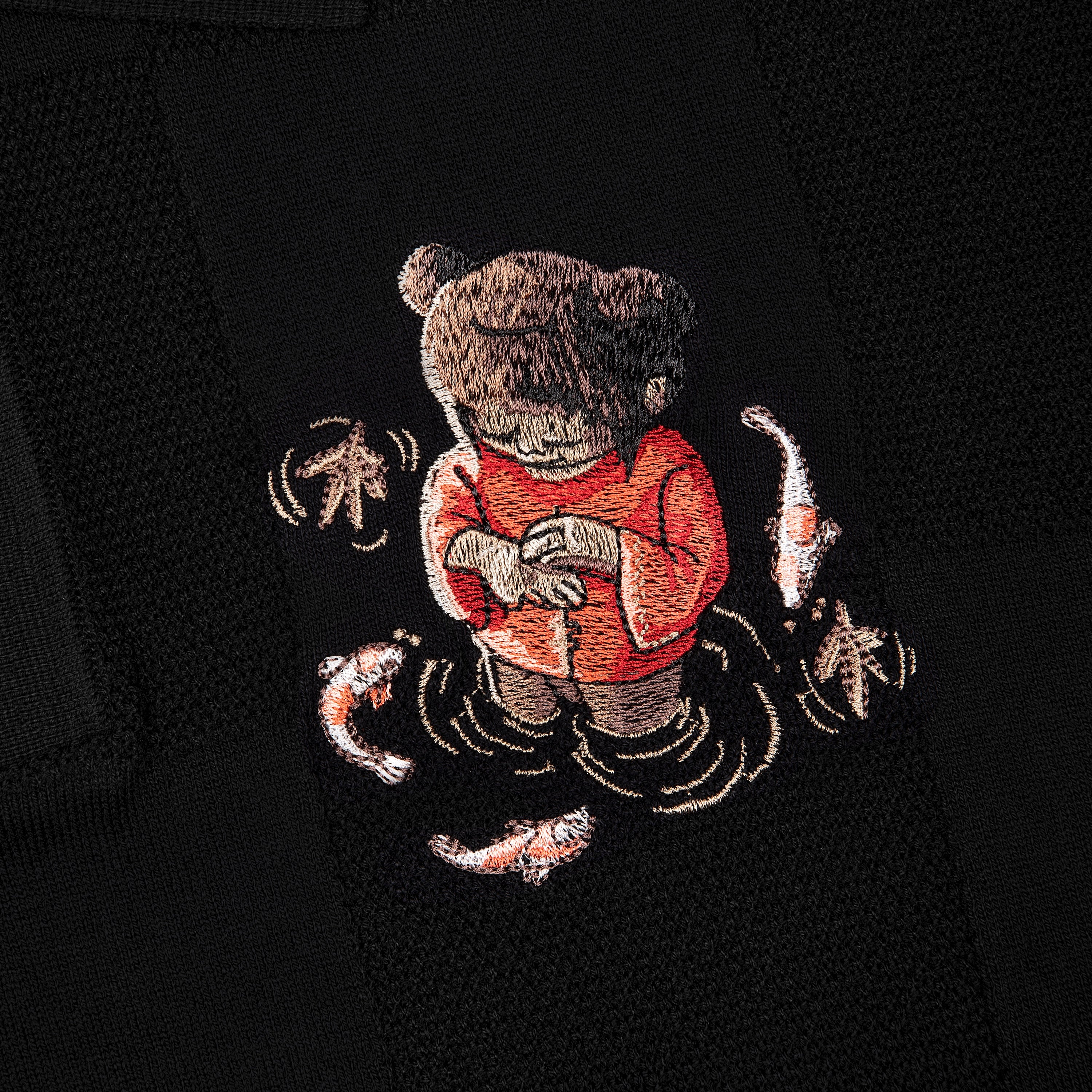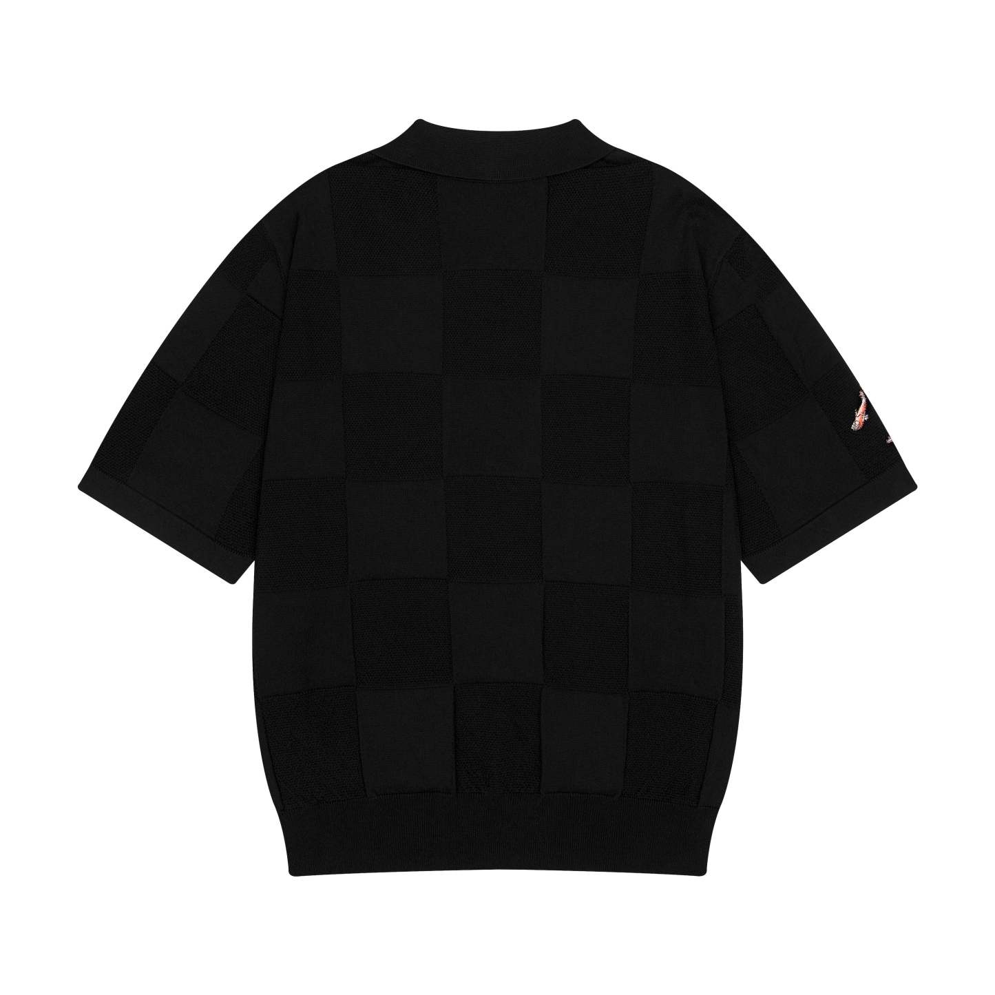 100% cotton / checkered knit pattern / embroidery on front and sleeve / custom buttons / fits true to size