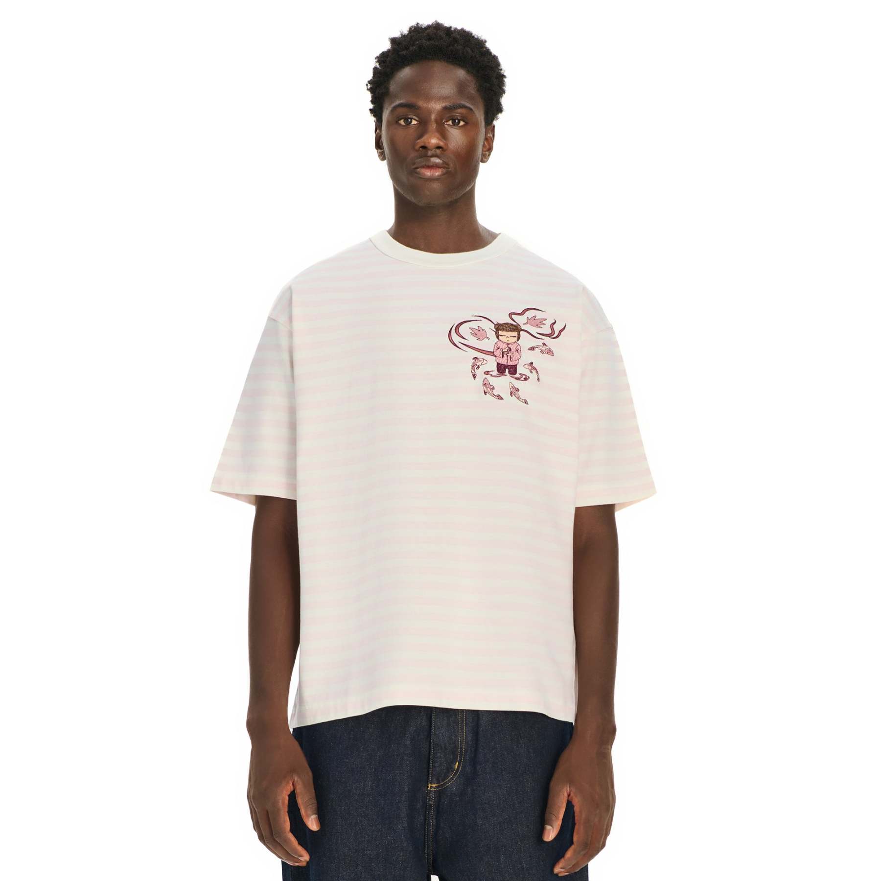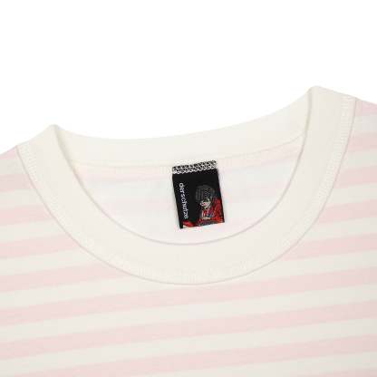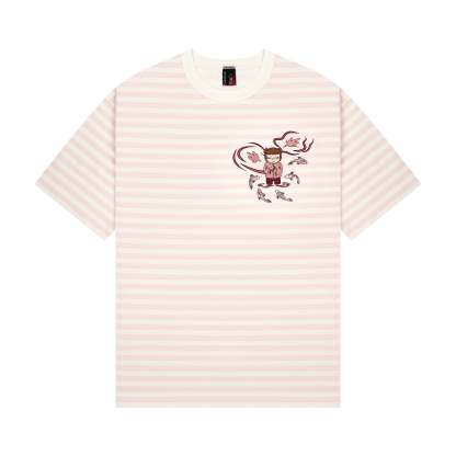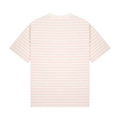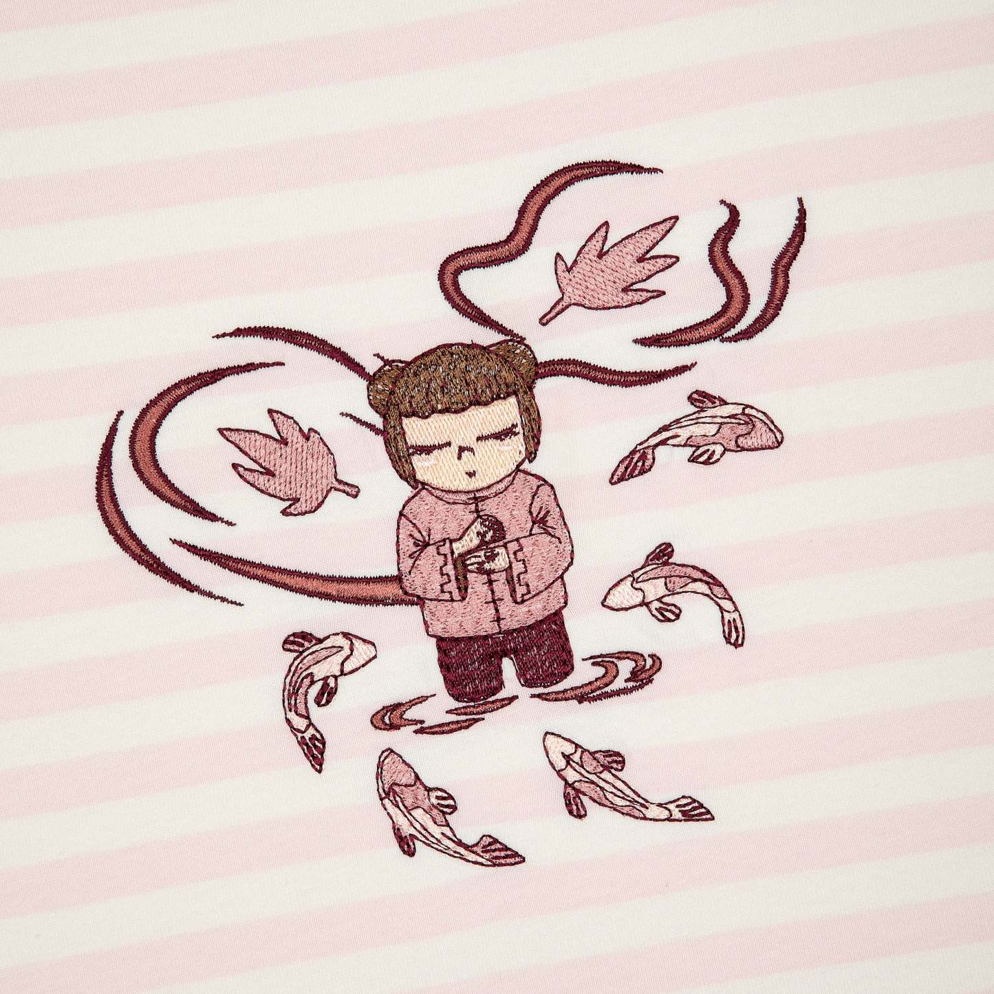 280gsm fabric / 100% preshrunk cotton / pink striped printed fabric / embroidery on front / fits true to size