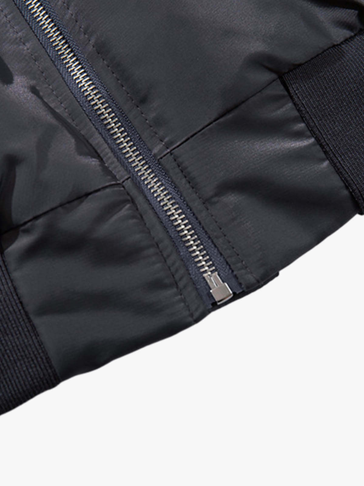 • Design Elements: Zippered side pockets, sleek zipper closure, ribbed cuffs