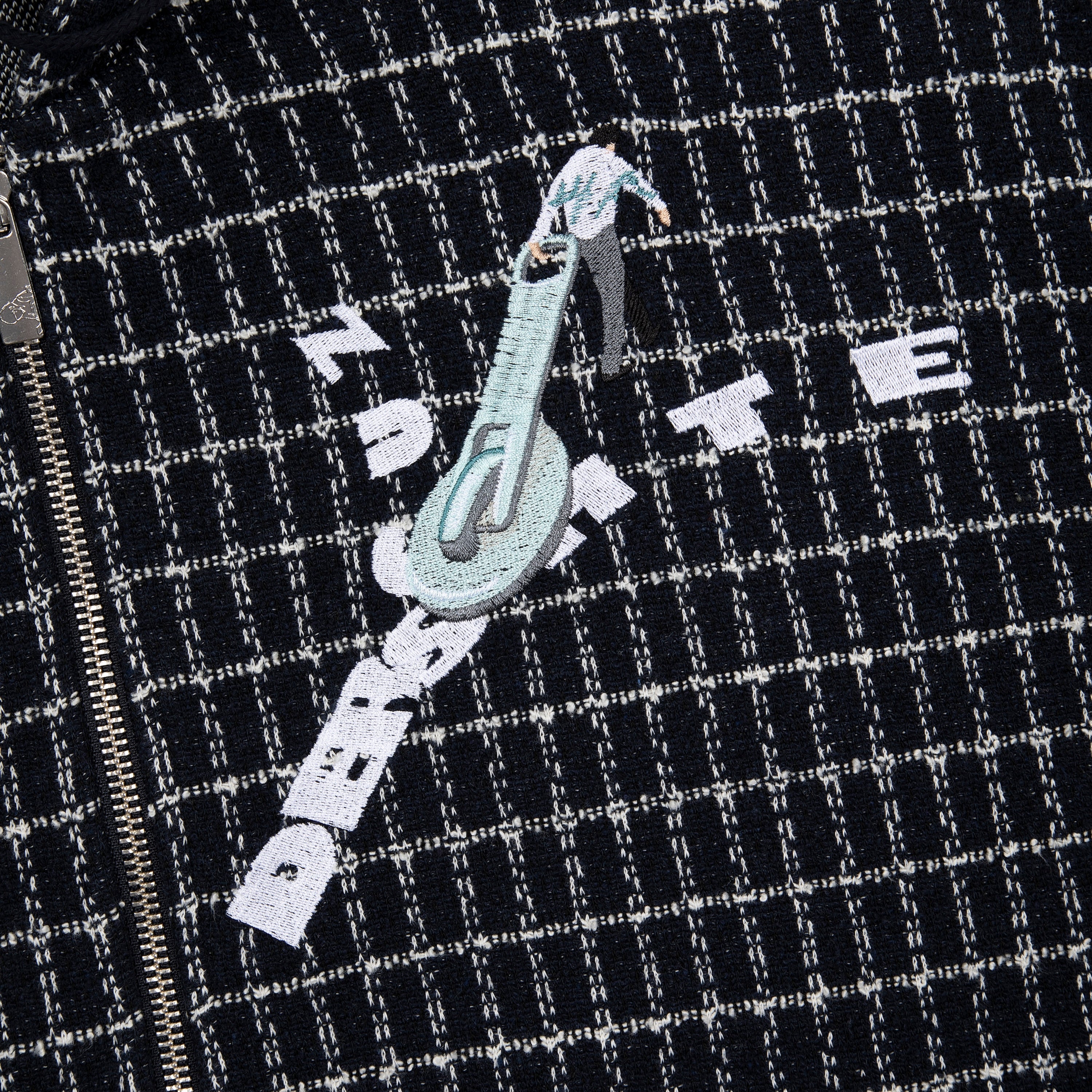 390gsm tweed fabric / 46% polyester 40% cotton 14% cv / embroidery on front / with double-slided YKK zipper / cropped fit / fits true to size