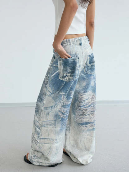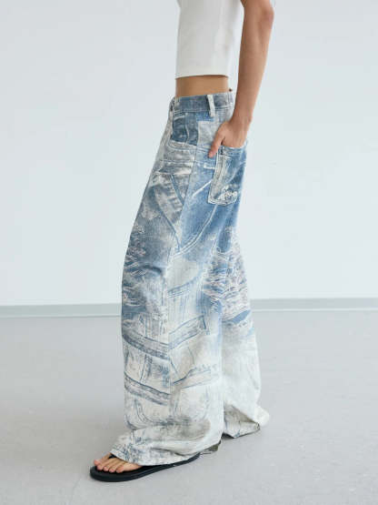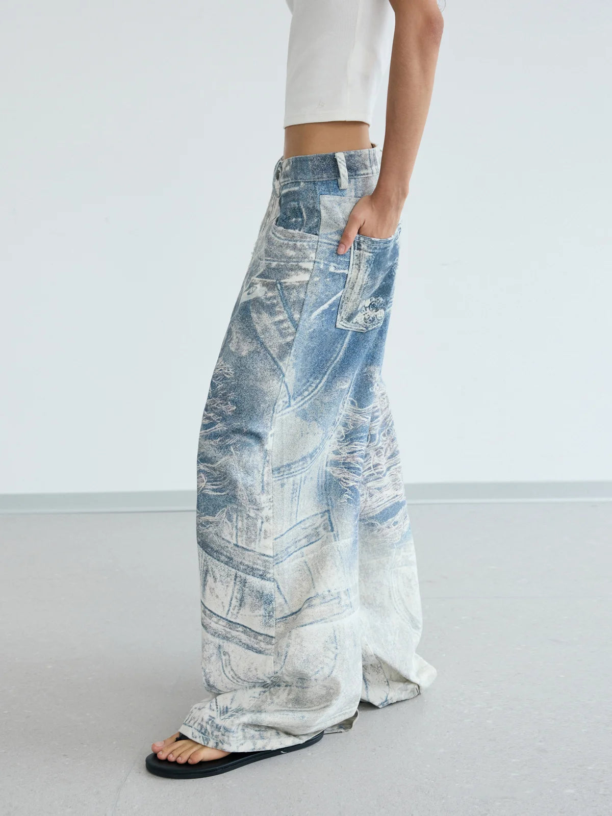 Peoplesense 3D Graffiti Print Baggy Jeans(Limited)