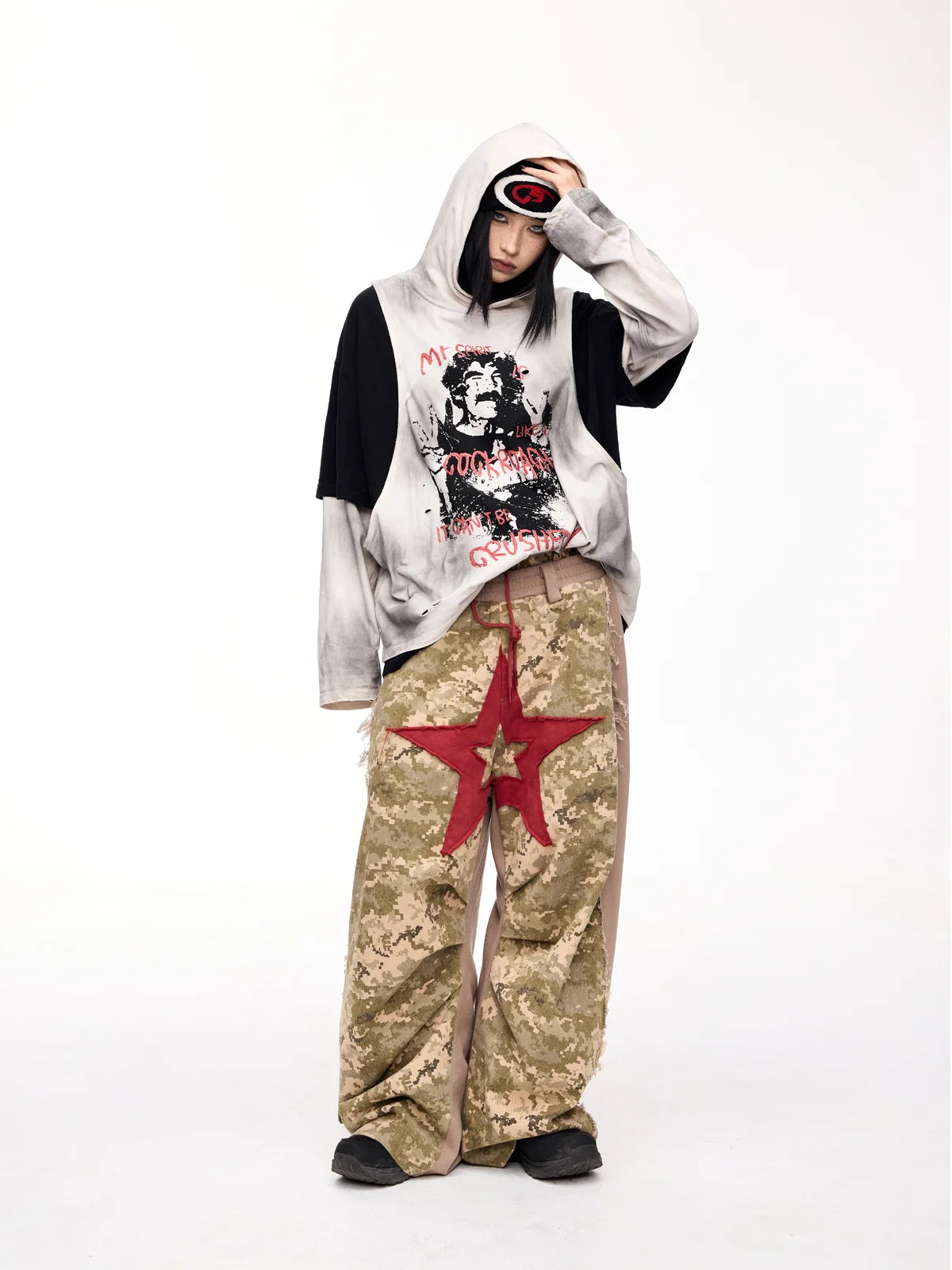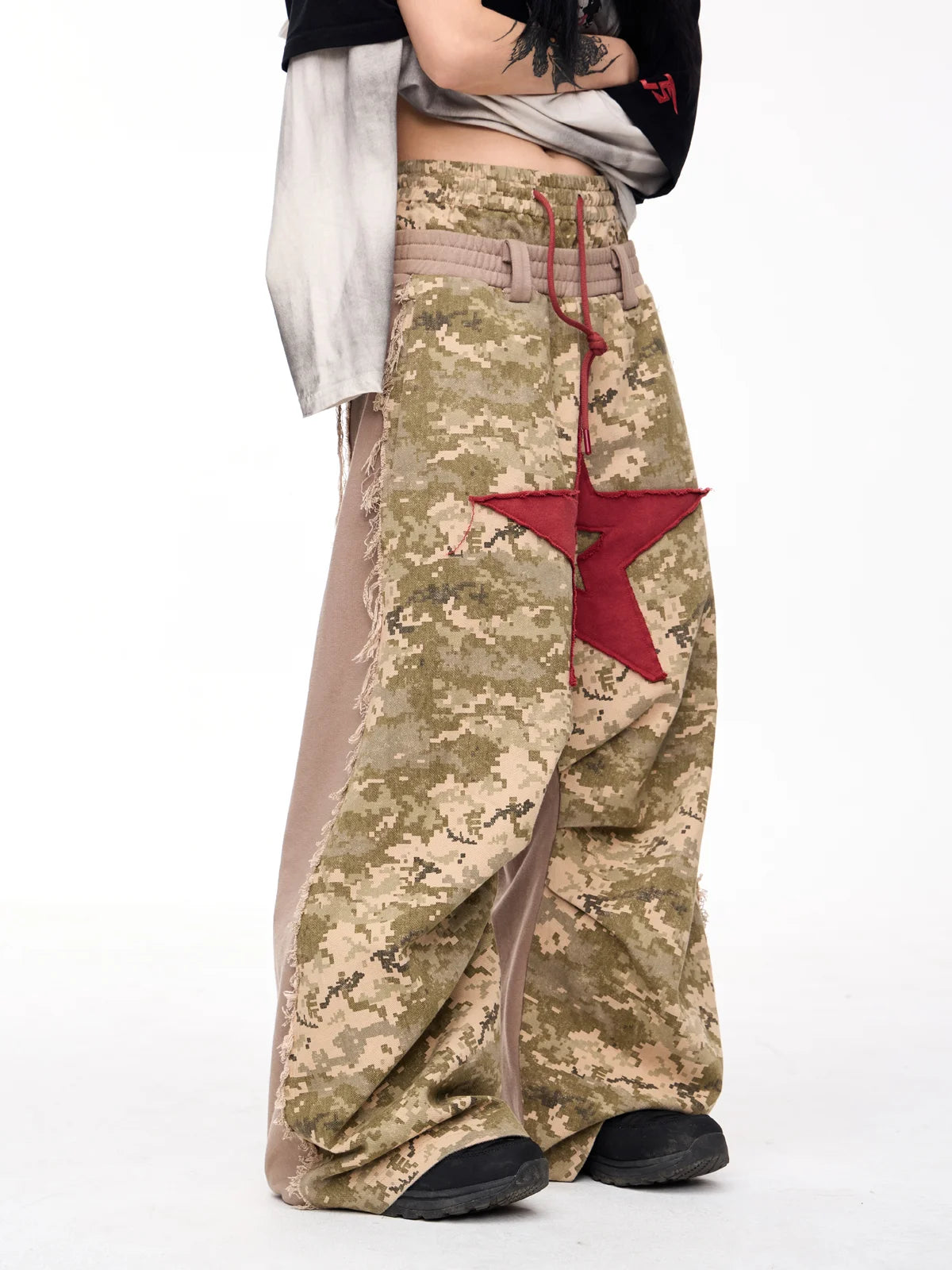 Peoplesense Camo Panel Double Waistband Cargo Pants