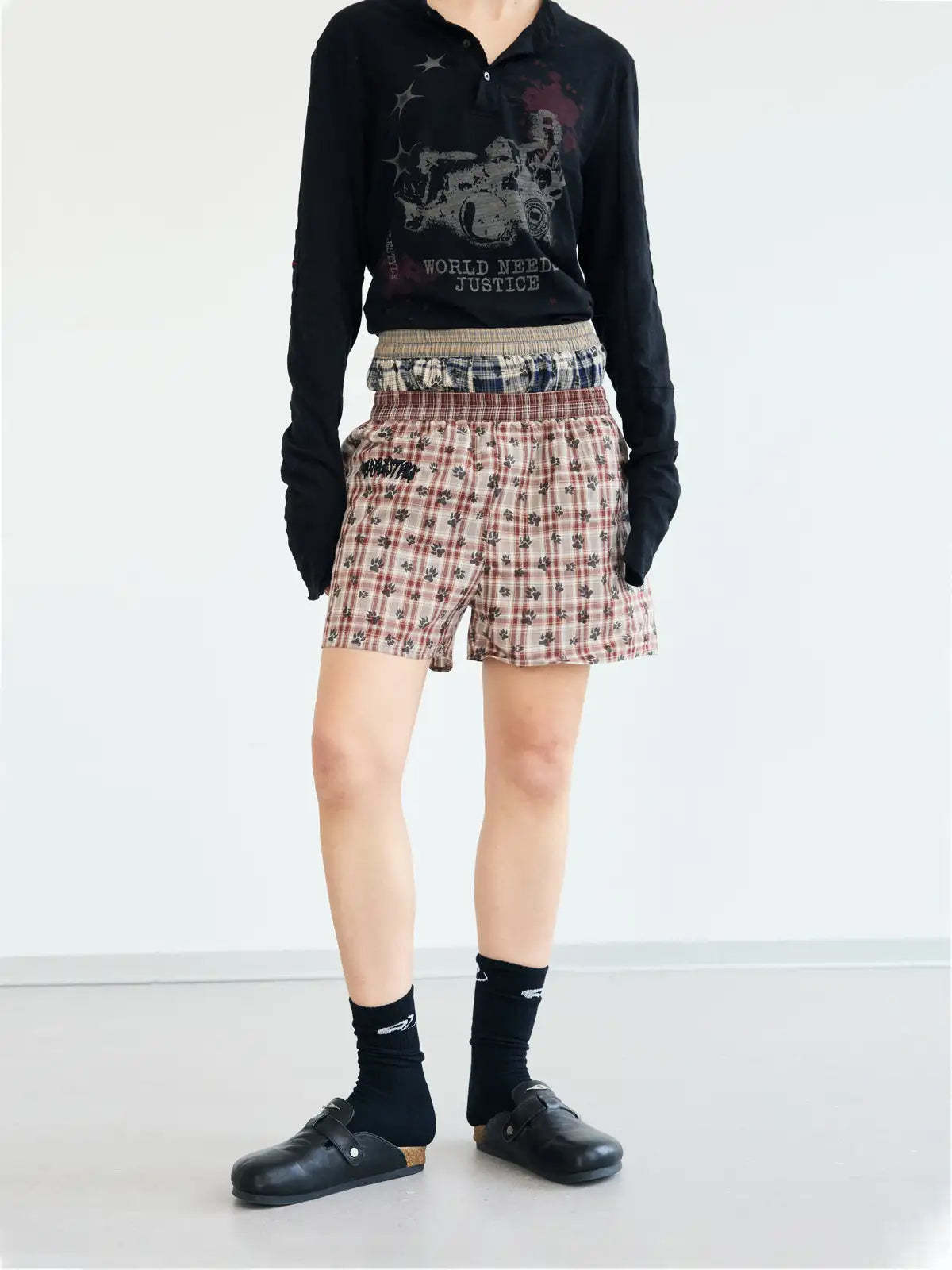 Peoplesense Color-block Plaid Shorts(Limited)