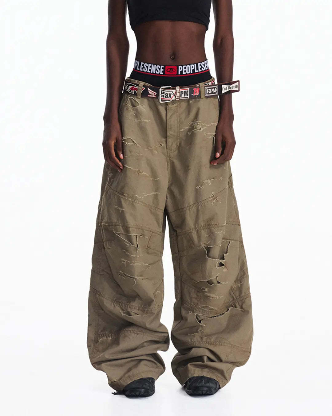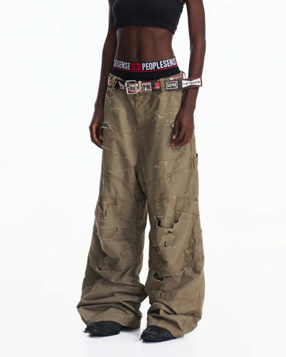 Peoplesense Distressed Checkered Utility Pants