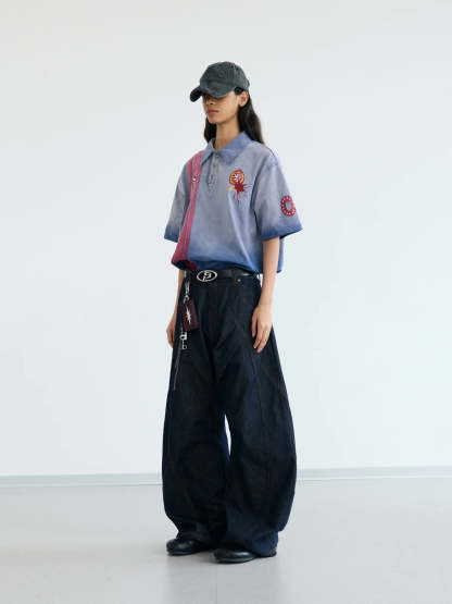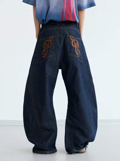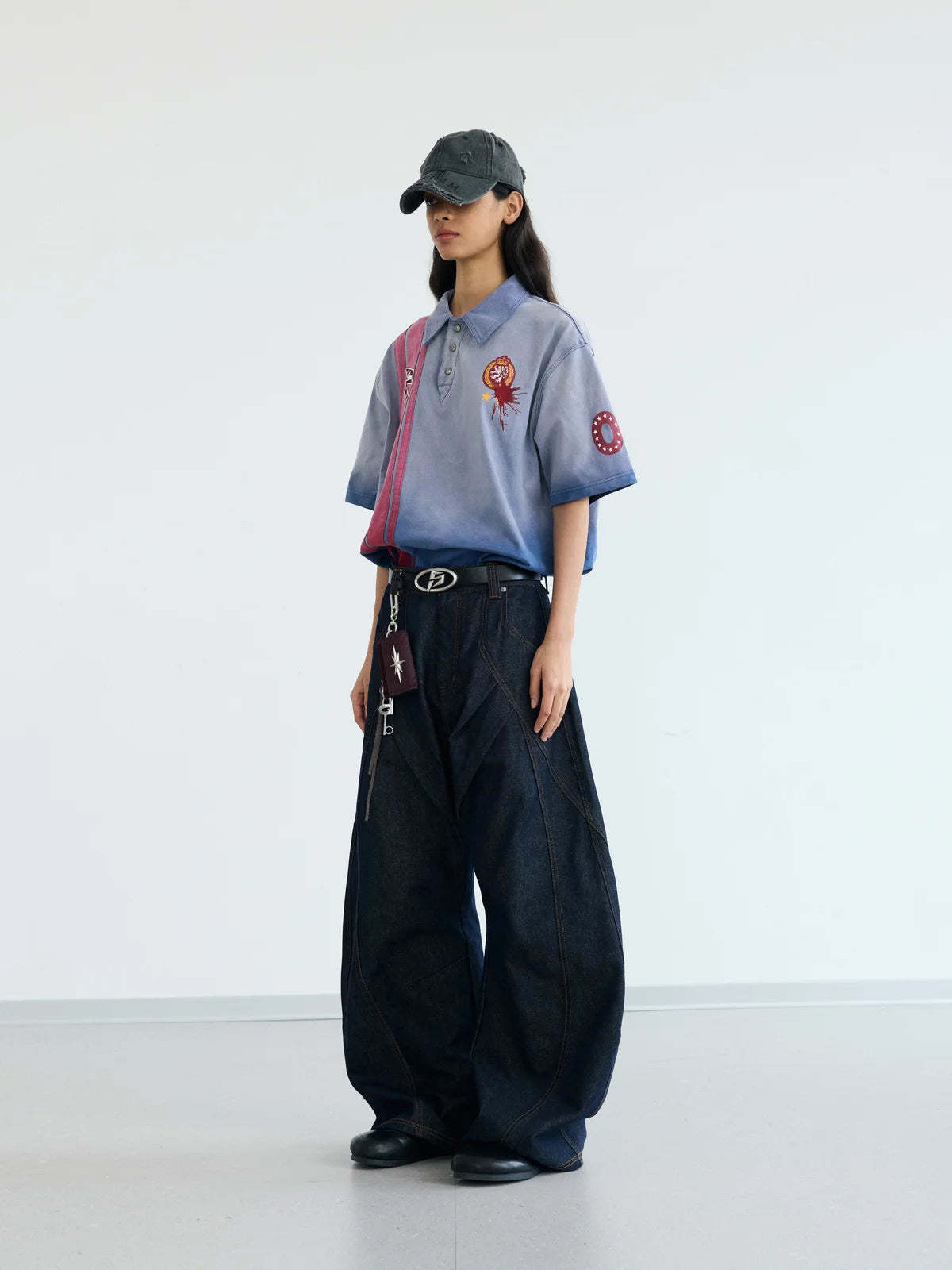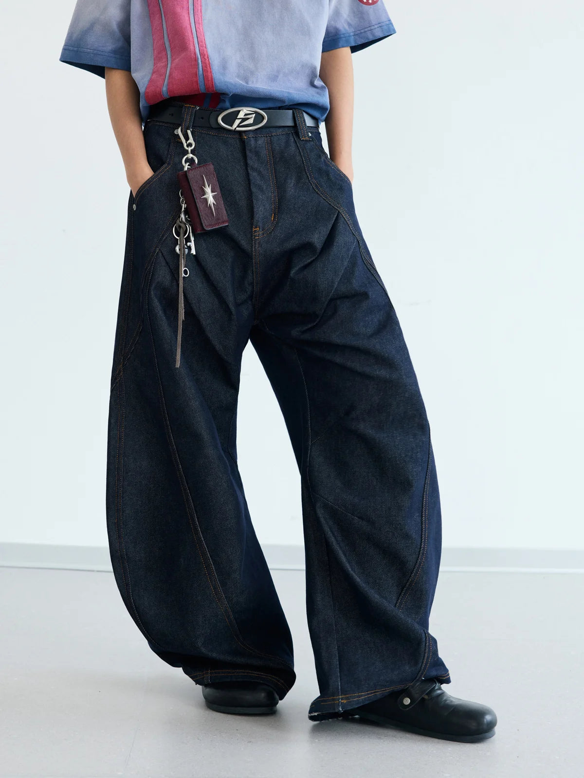 Peoplesense Raw Denim Deconstructed Curved Leg Jeans