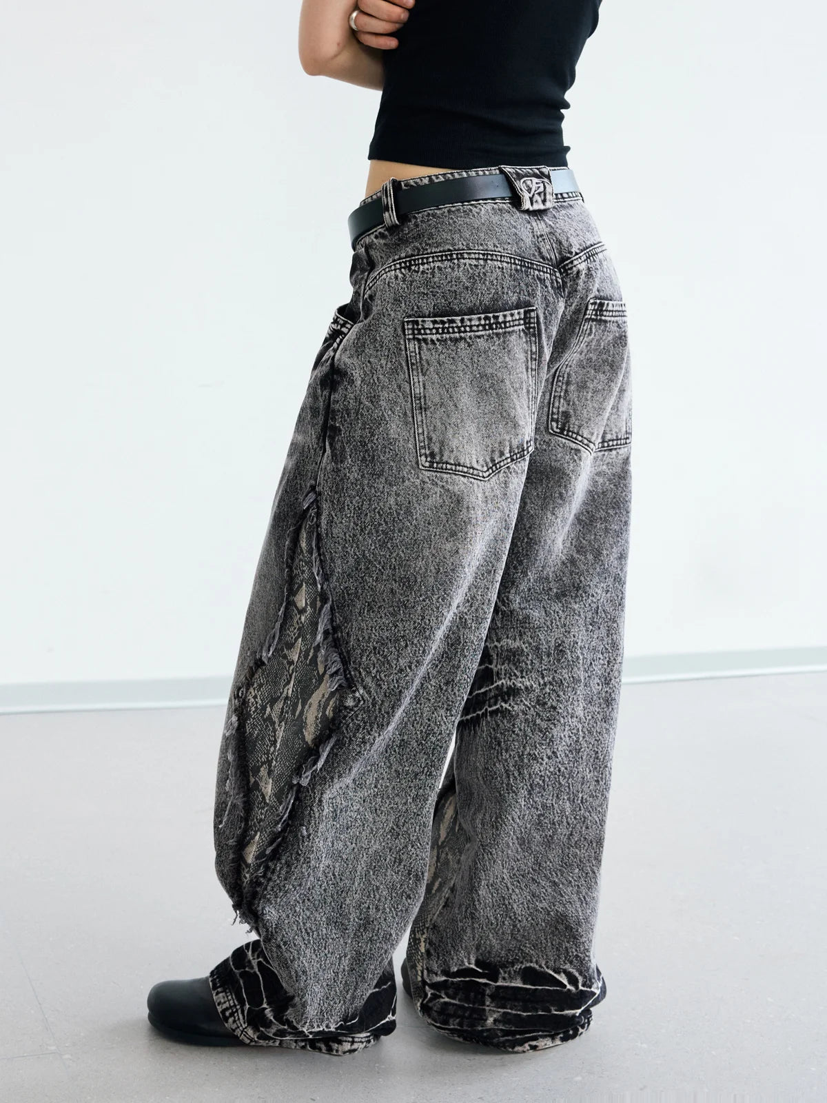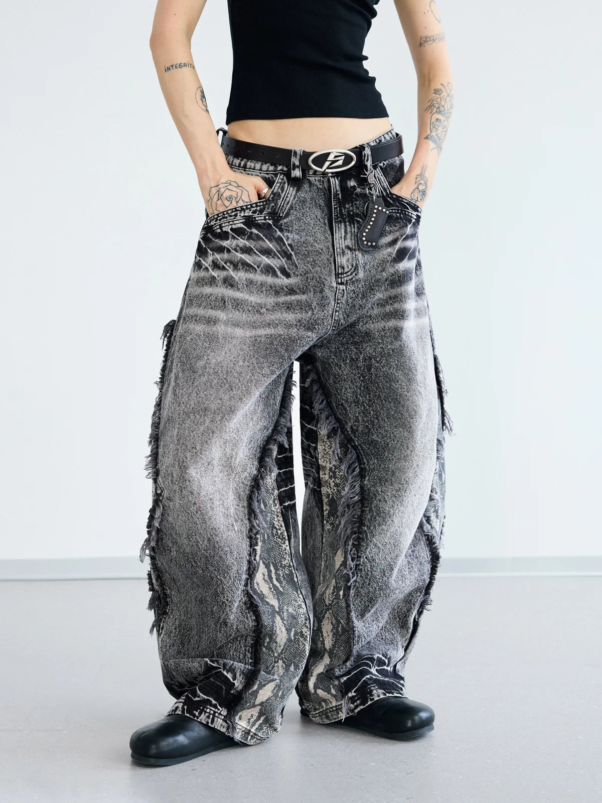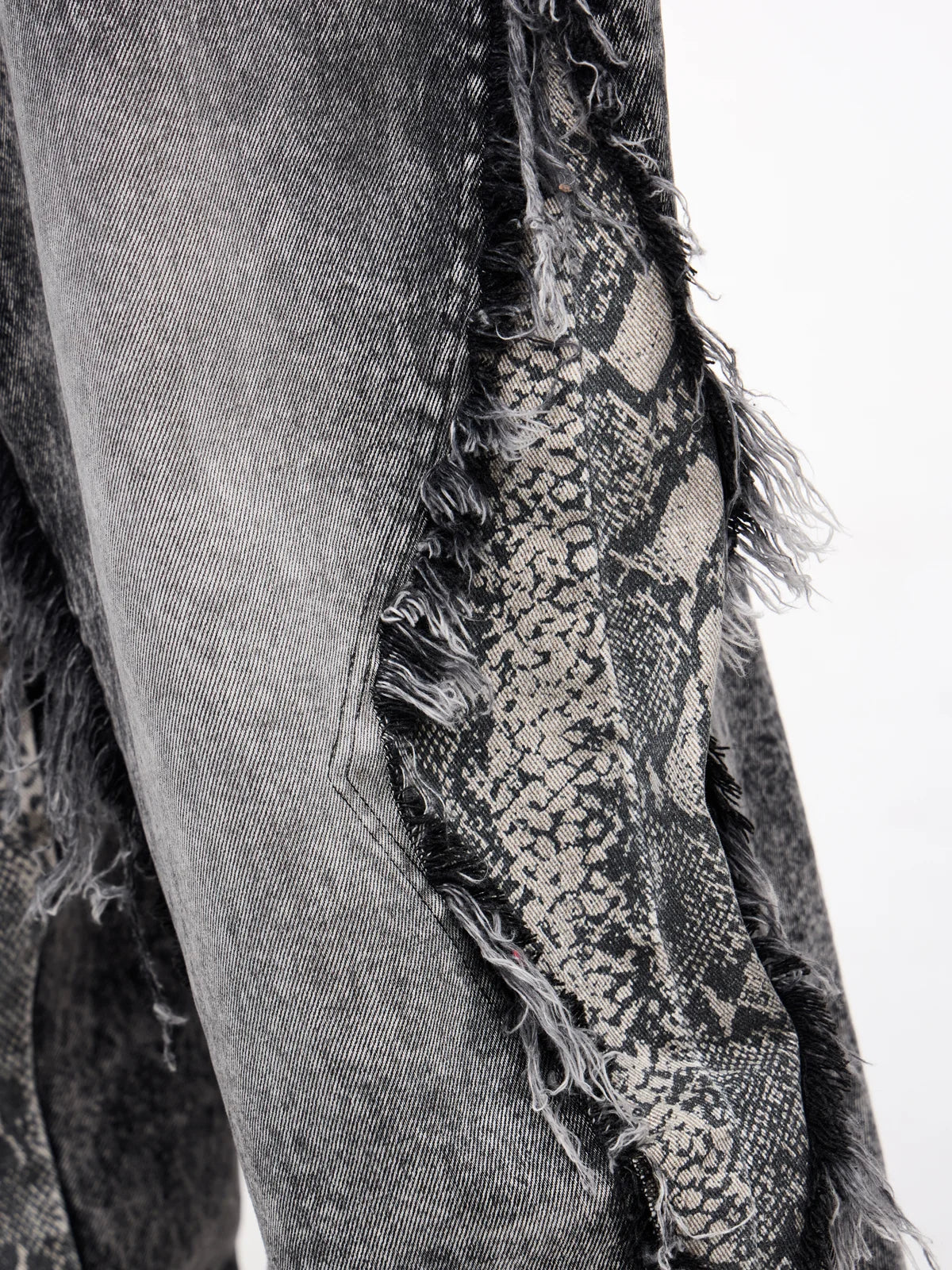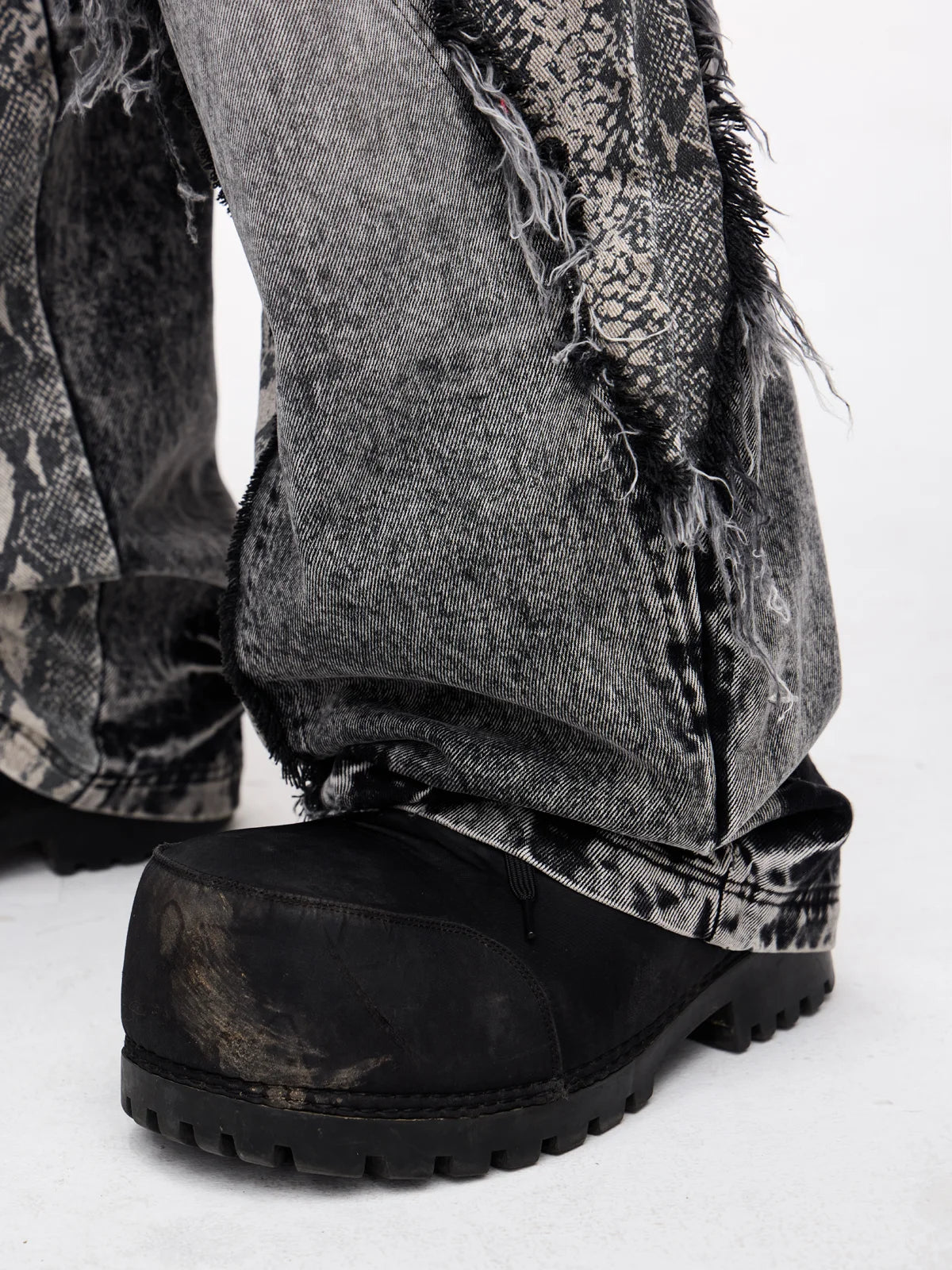 Peoplesense Raw-edge Snake Print Baggy Jeans