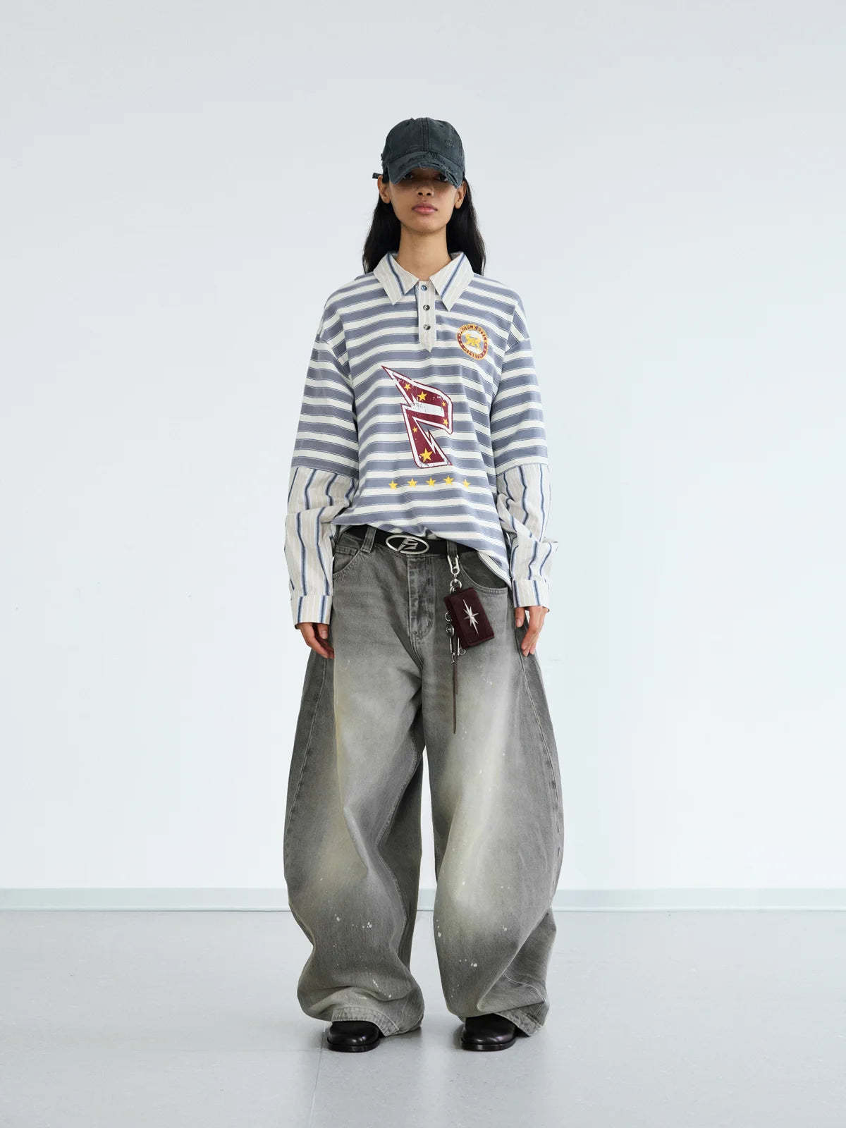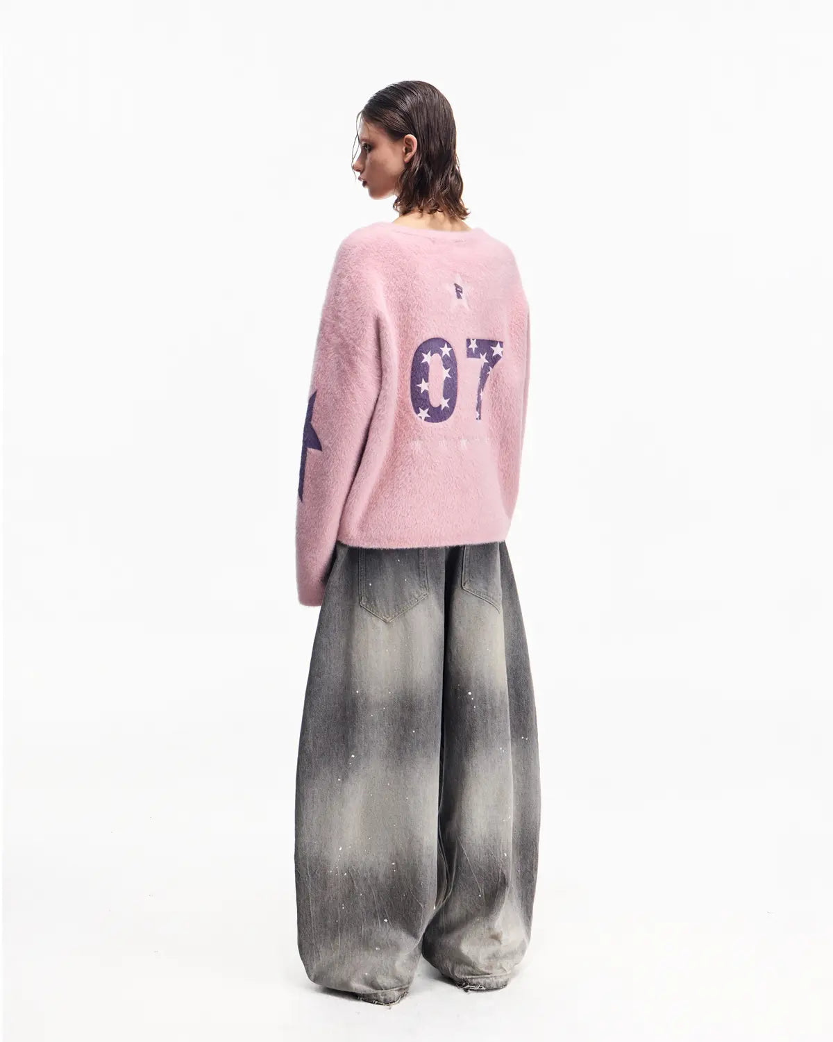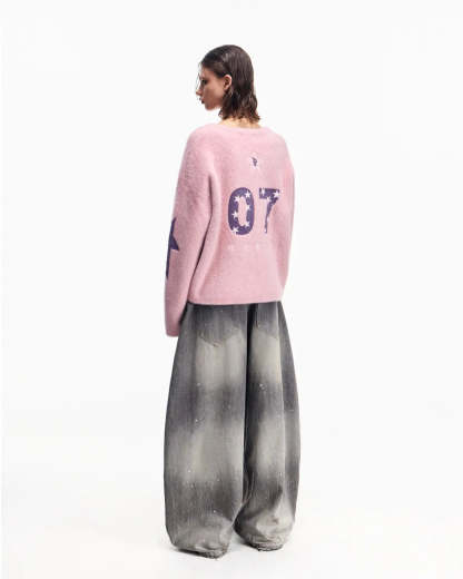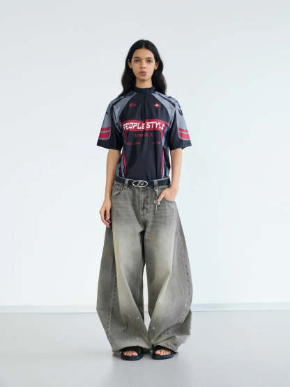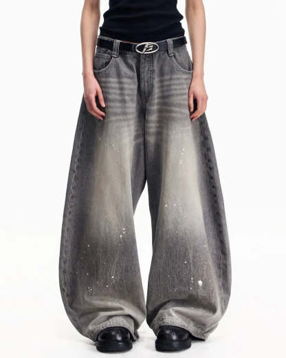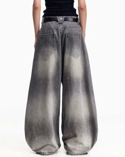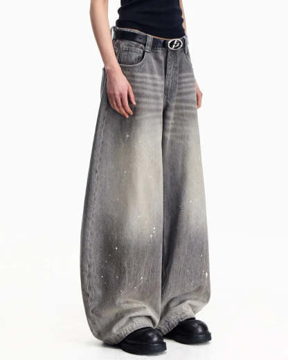 Peoplesense Vintage Ink-Splatter Grey Wide-Leg Jeans