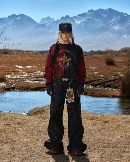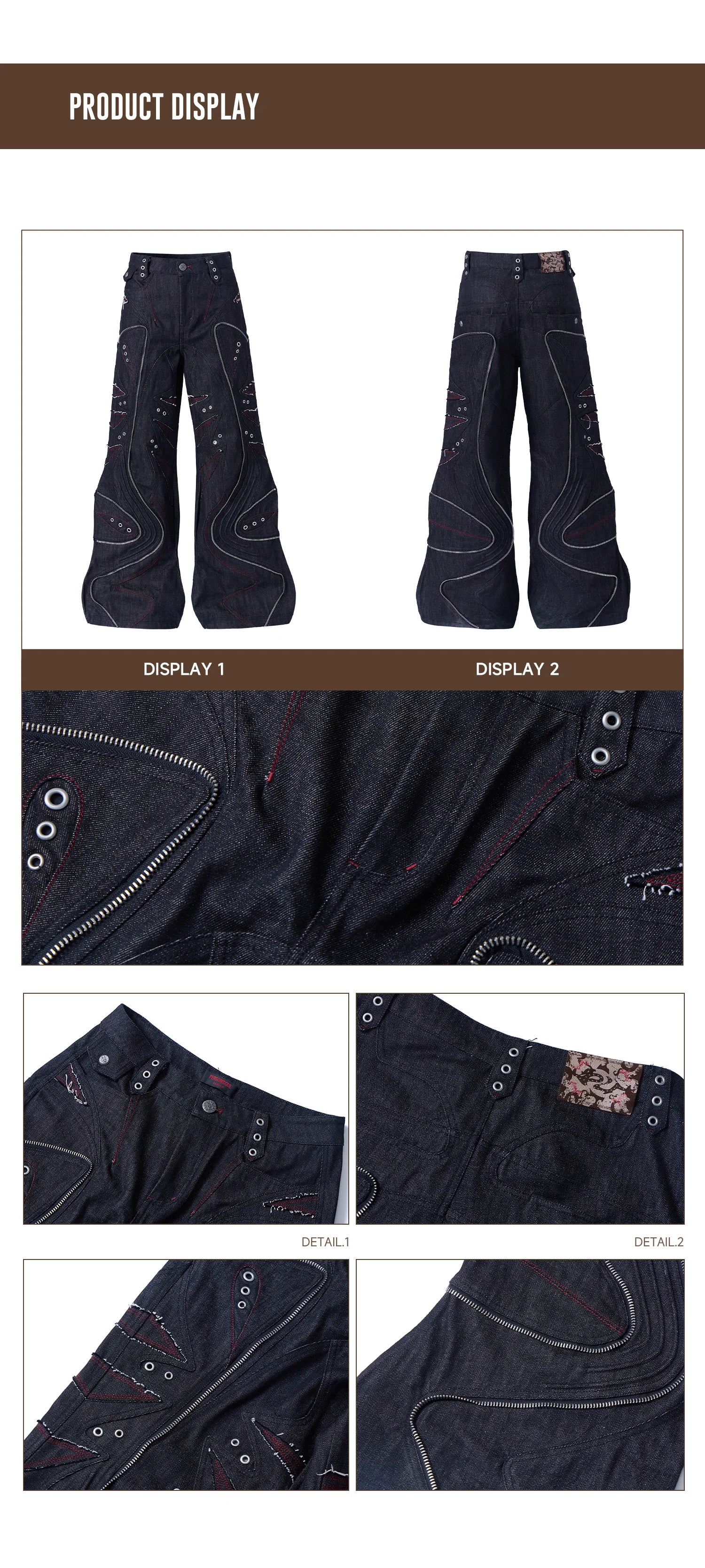 Personsoul Baggy Denim Jeans with Red Contrast Stitch