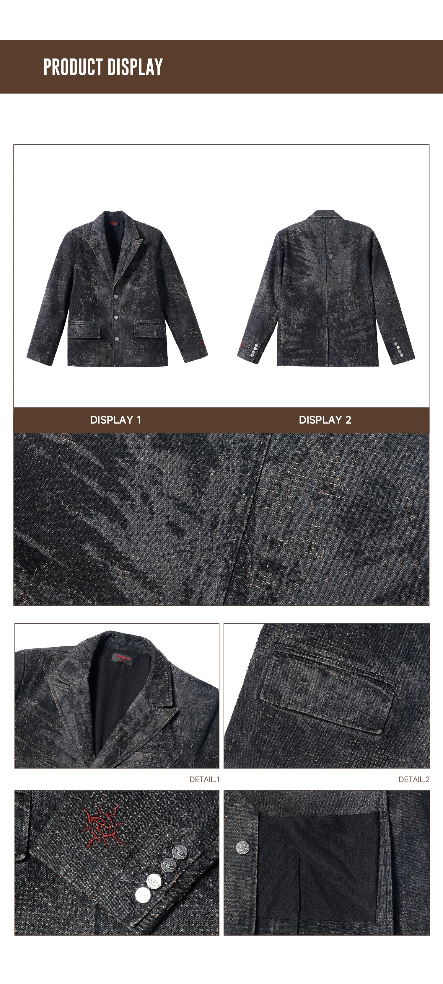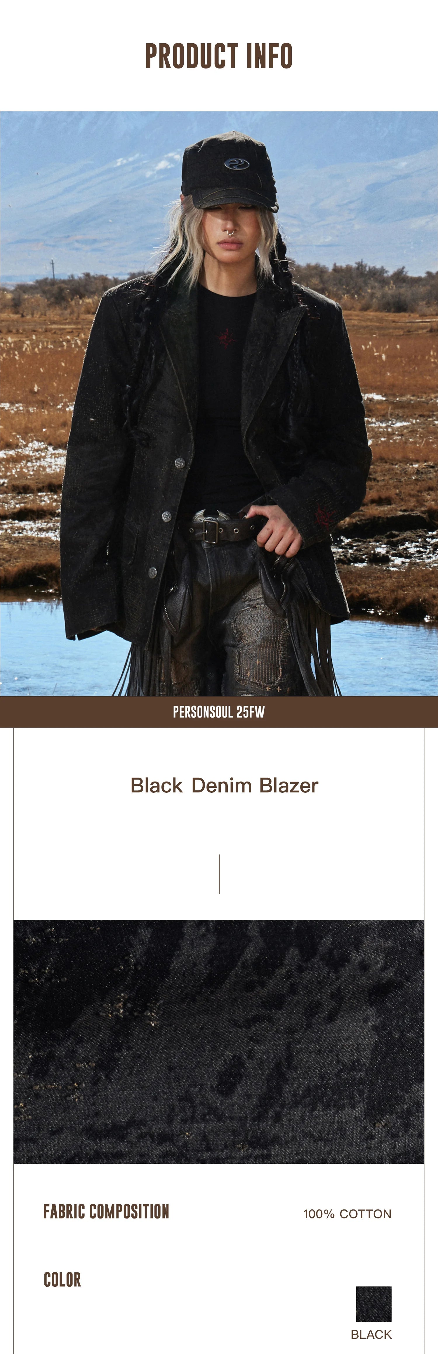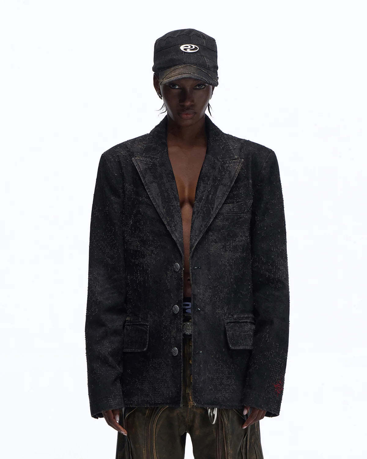 Personsoul Black Laser-Distressed Denim Blazer