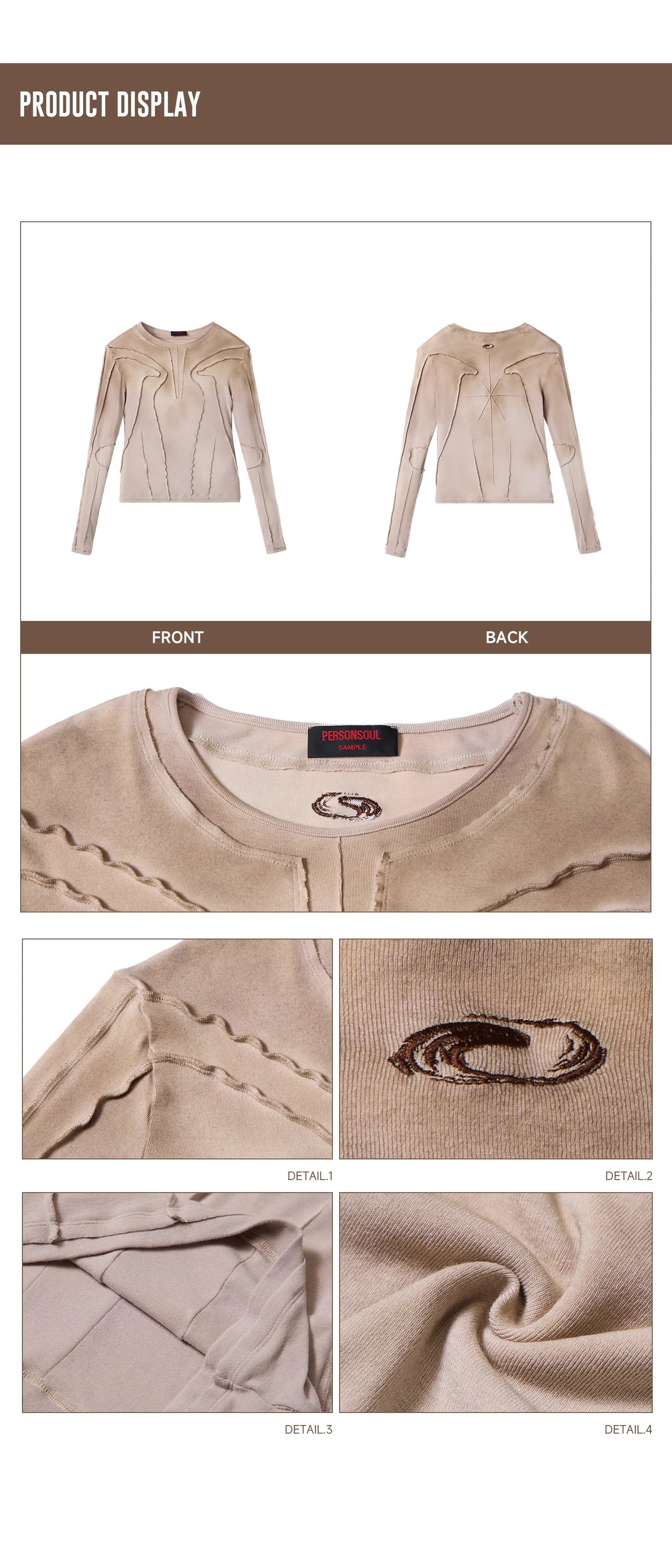 Personsoul Contrast Stitch Long Sleeve Top