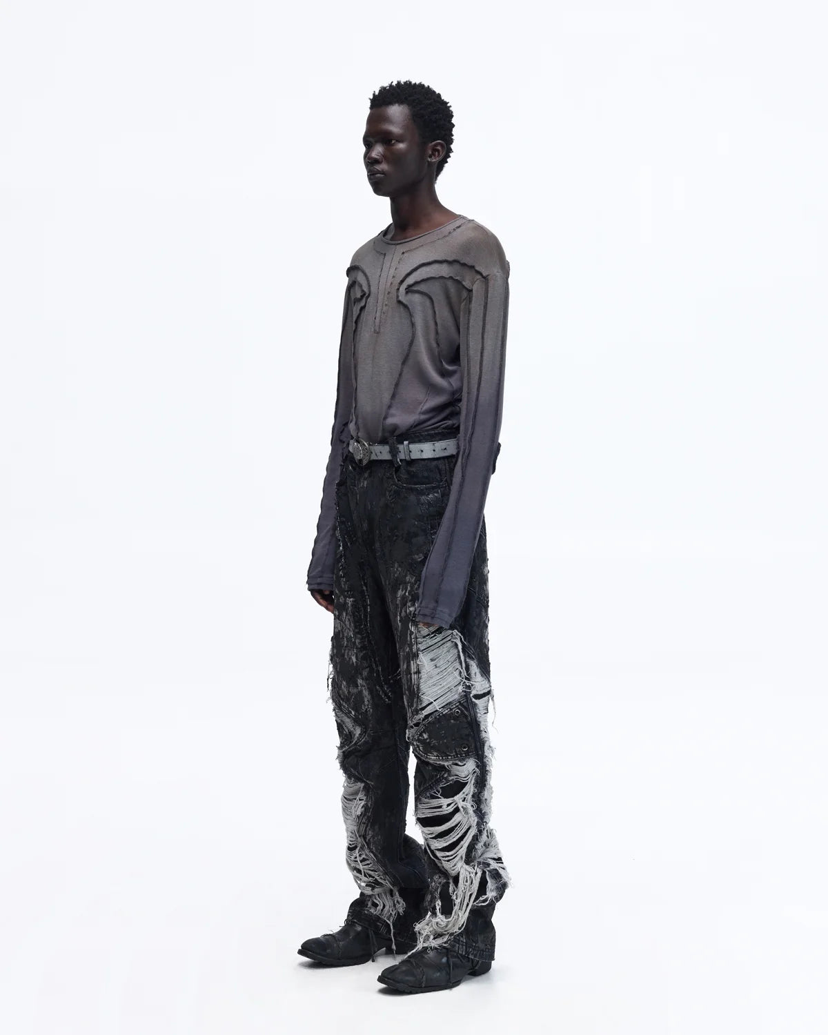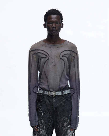 Personsoul Contrast Stitch Long Sleeve Top In Grey
