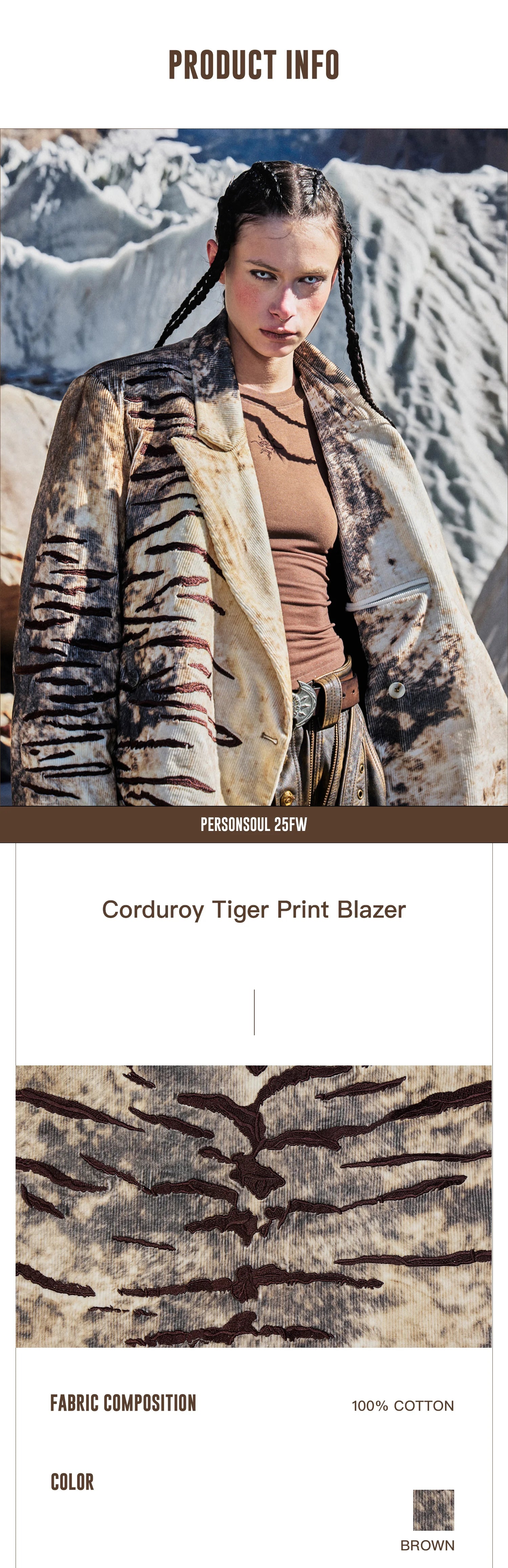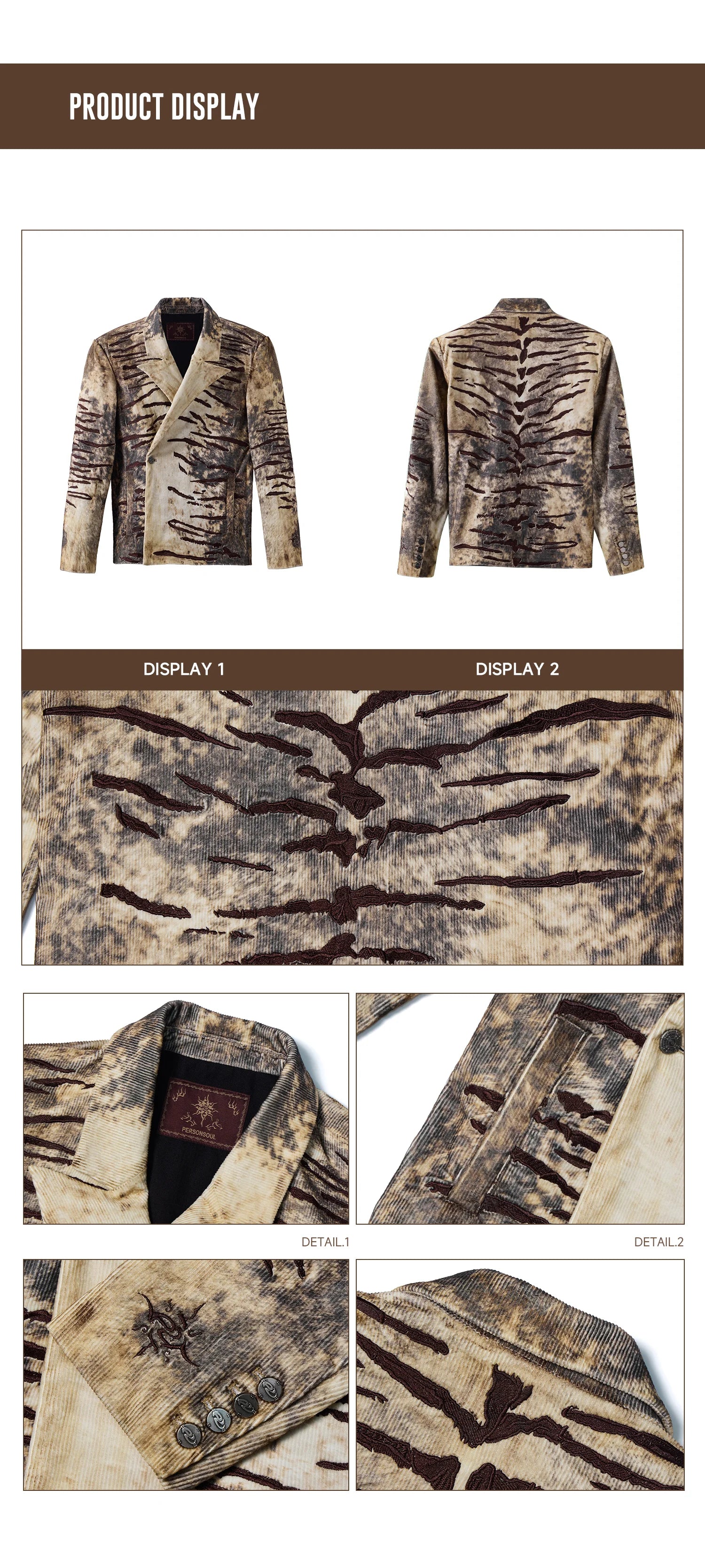 Personsoul Corduroy Tiger Print Blazer