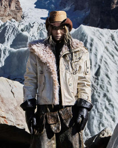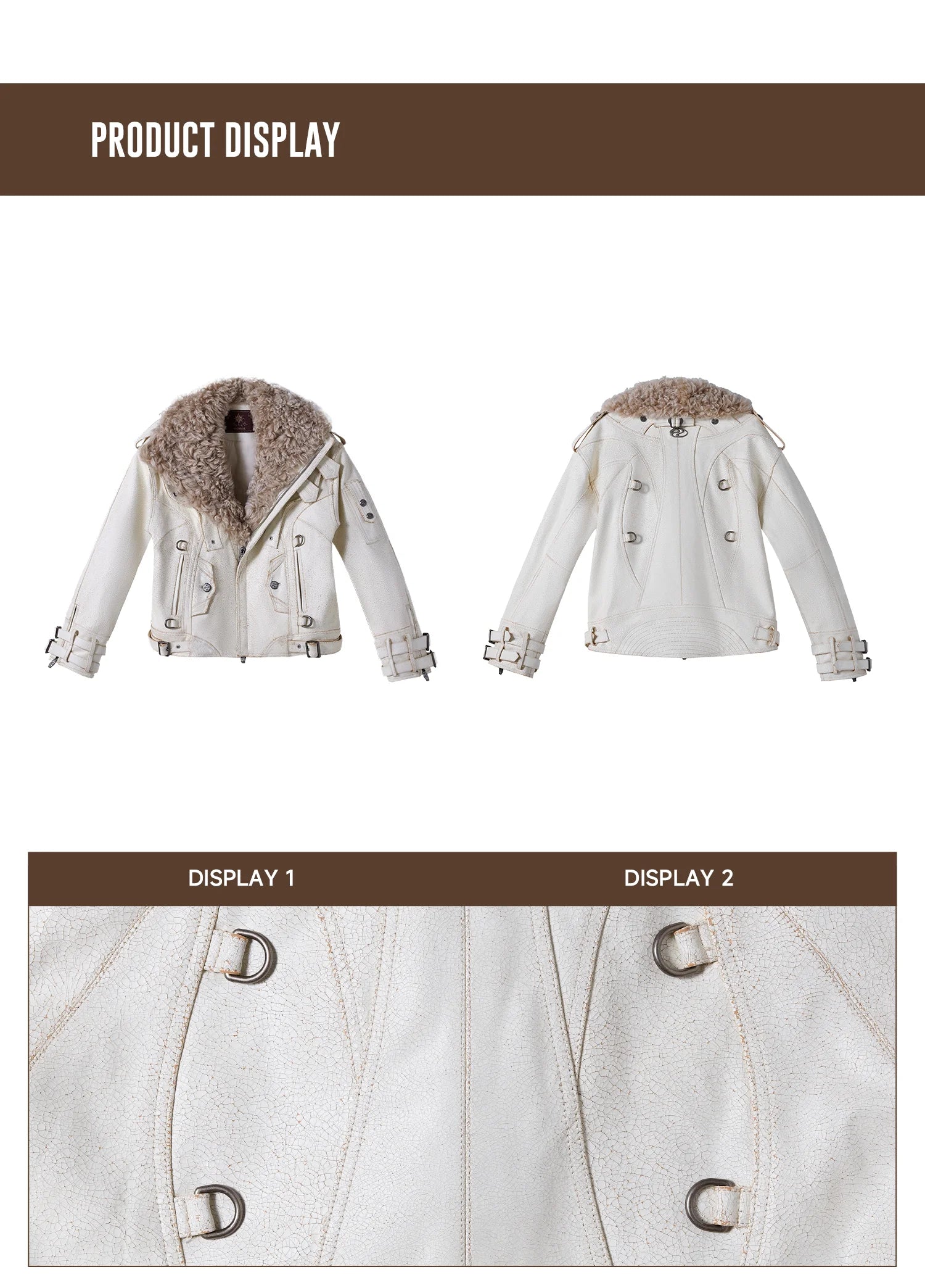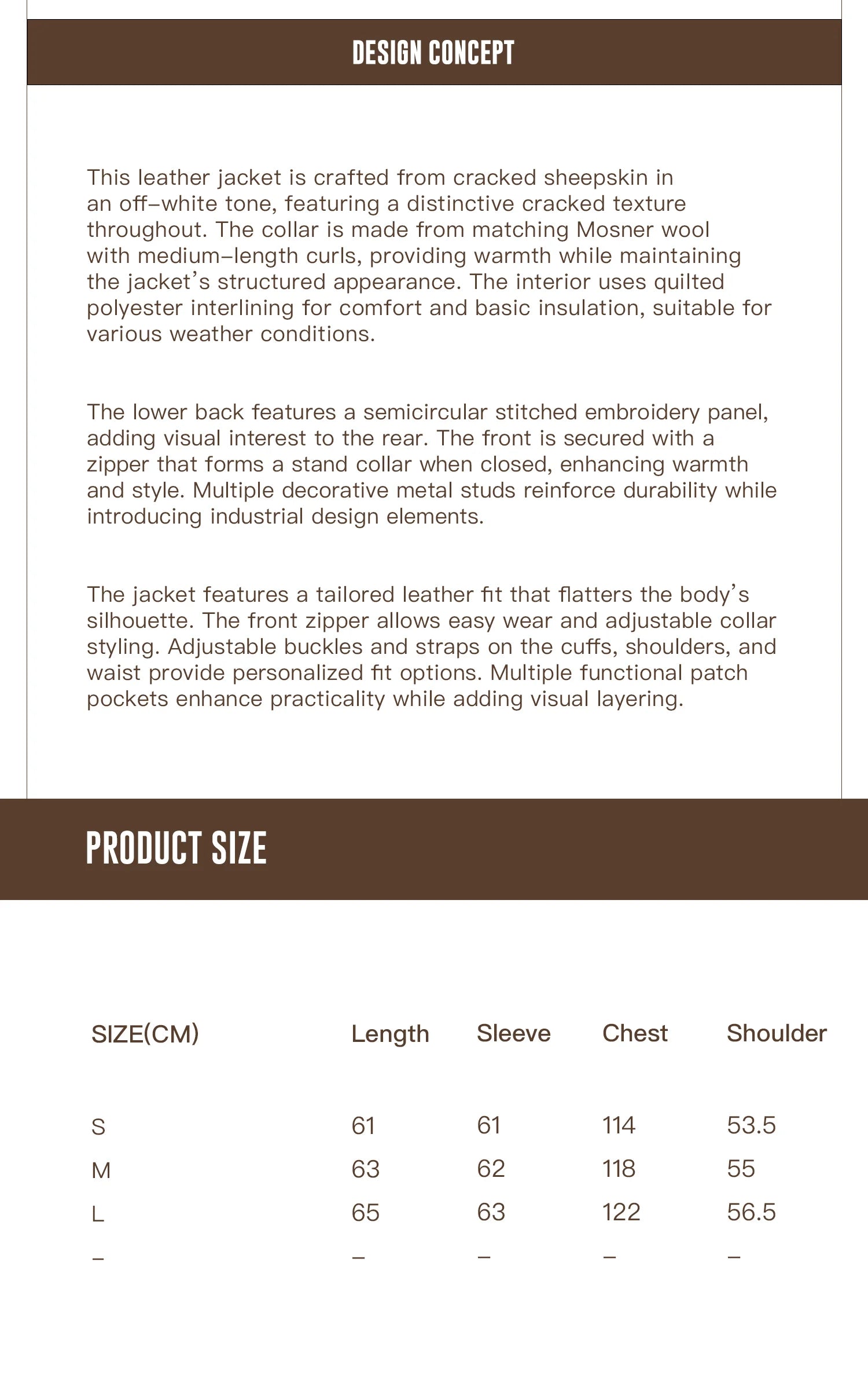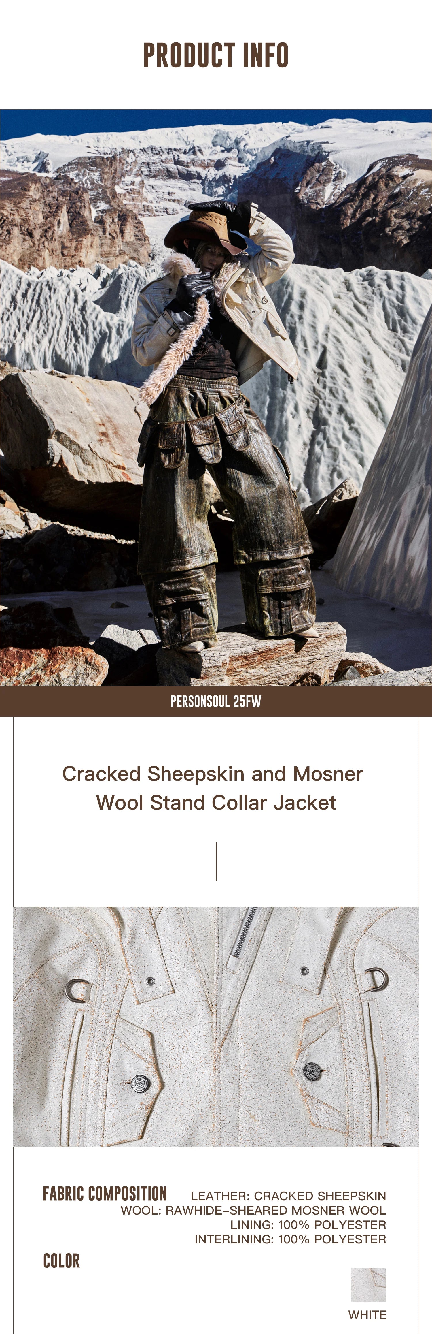 Personsoul Cracked Sheepskin and Mosner Wool Stand Collar Jacket(Limited 100 pieces)