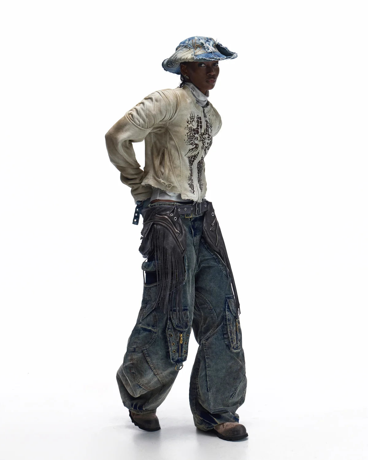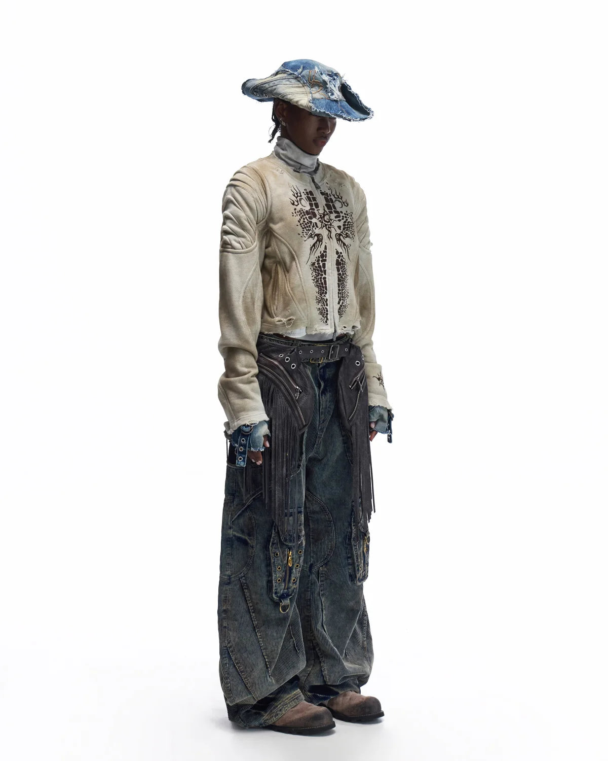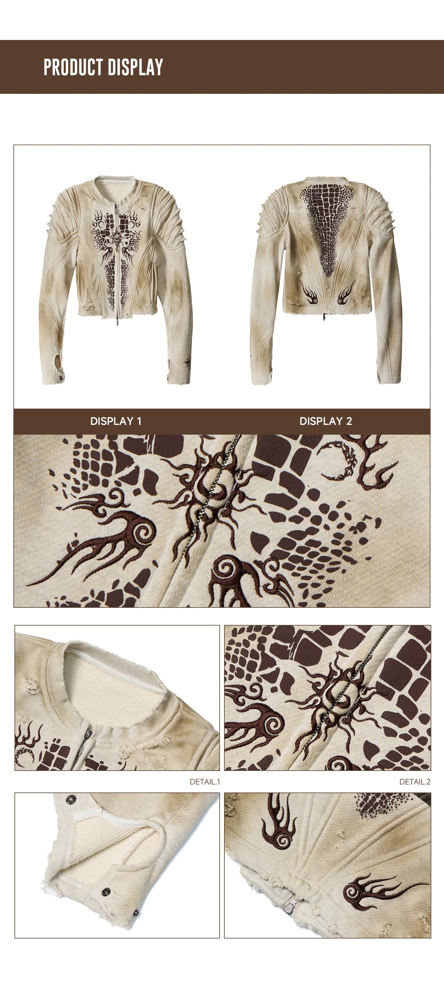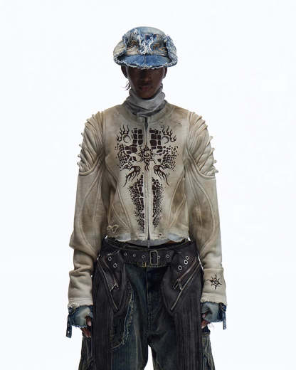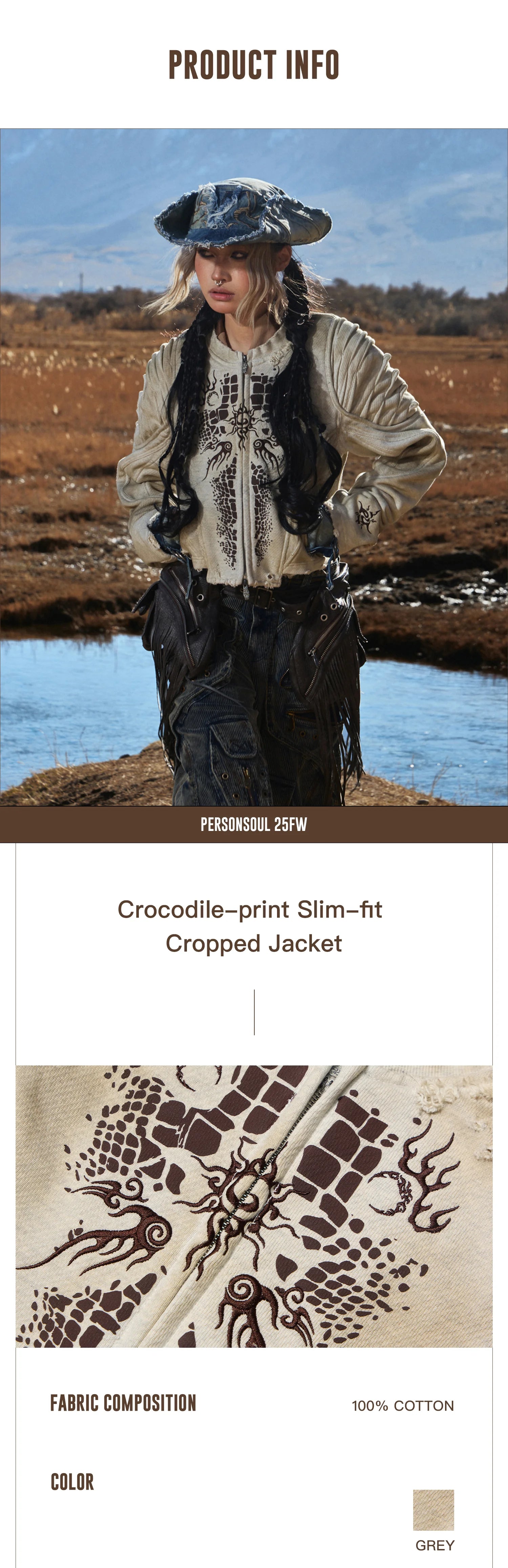 Personsoul Crocodile-print Slim-fit Cropped Jacket