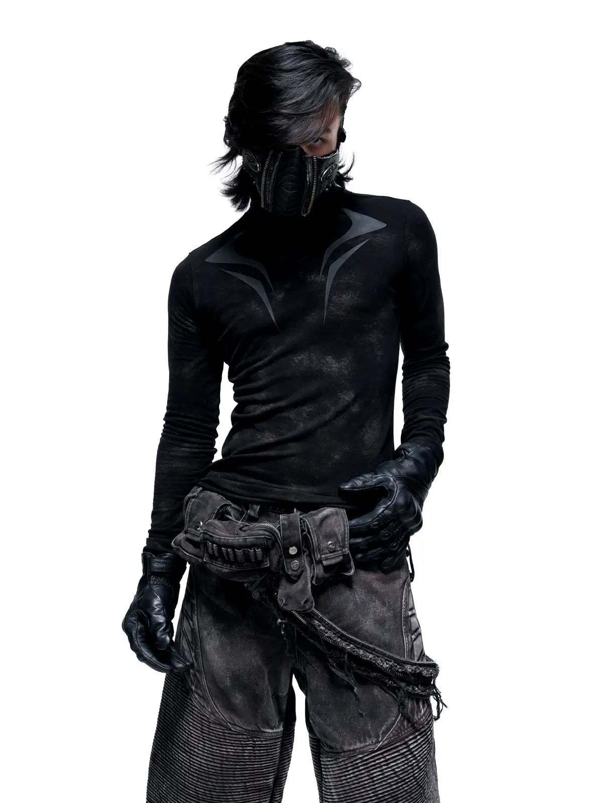 Personsoul Dark Spine Pattern Slim Fit Shirt