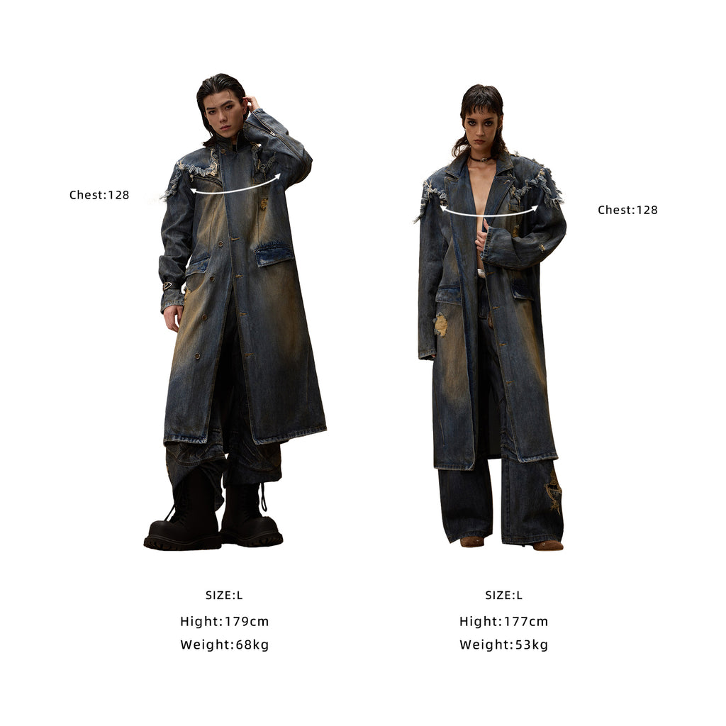 Personsoul Dirty Trench Denim Coat